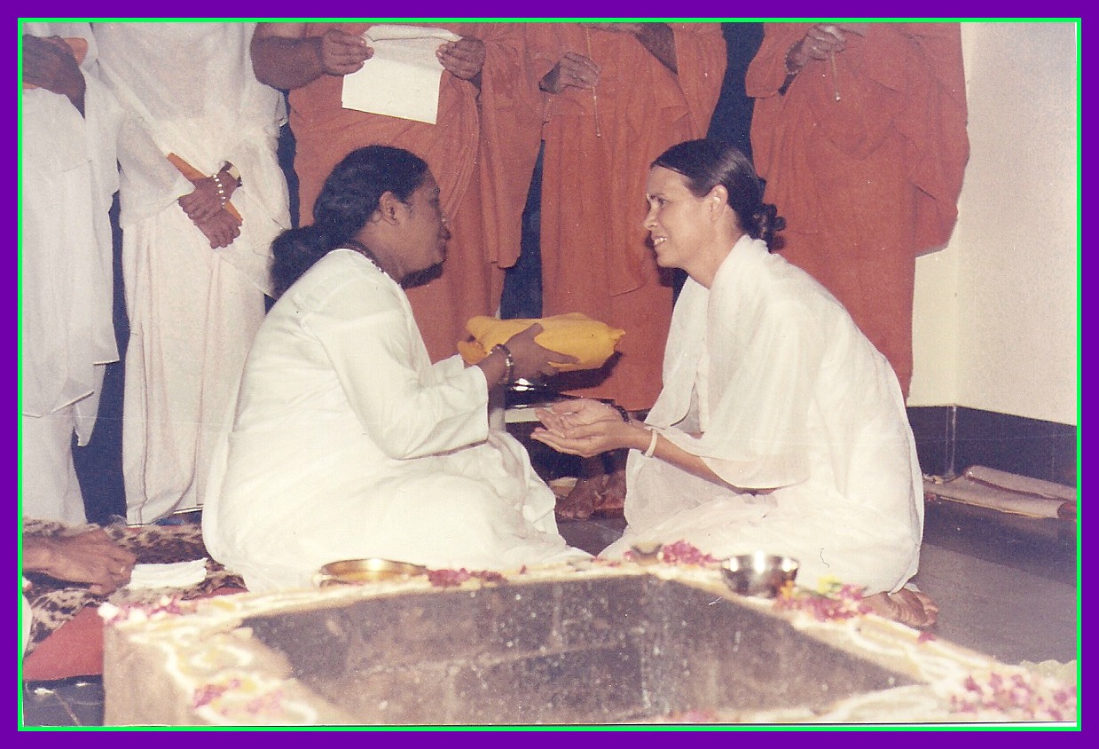 As I mentioned before, Nirmalamrita received her new name and her yellow robes (which designate that she had taken the vows of brahmacharya) in 1996.