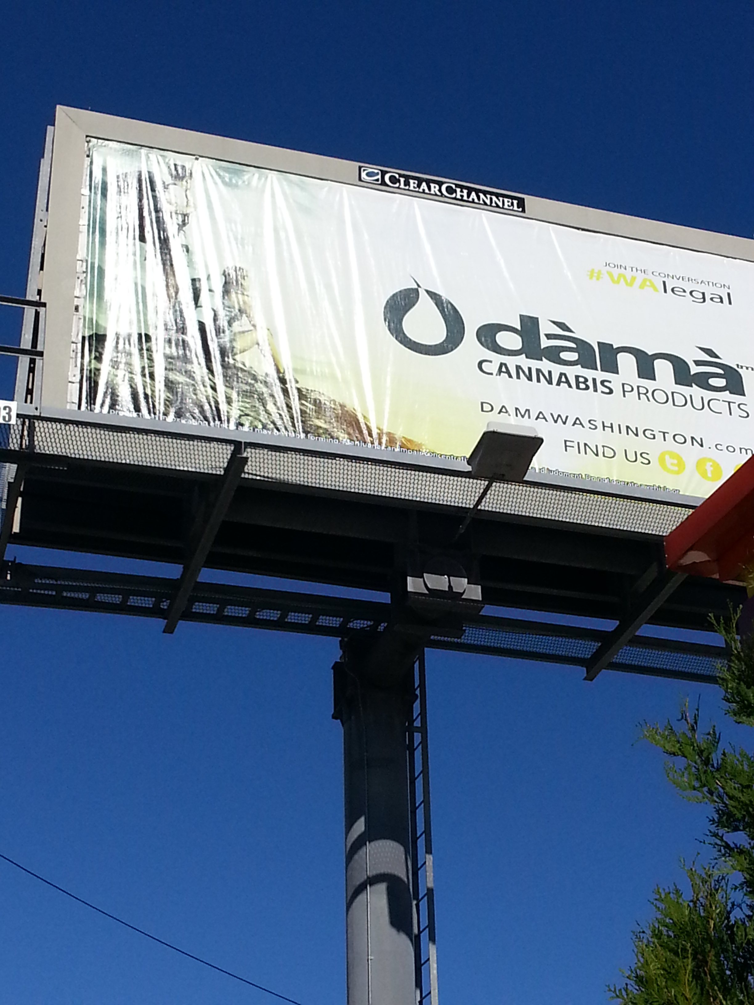 I investigated the situation further and learned that the owner was wrong about there being no restrictions. A 2012 Washington State initiative prohibits cannabis billboards from being near schools, churches or cemeteries.