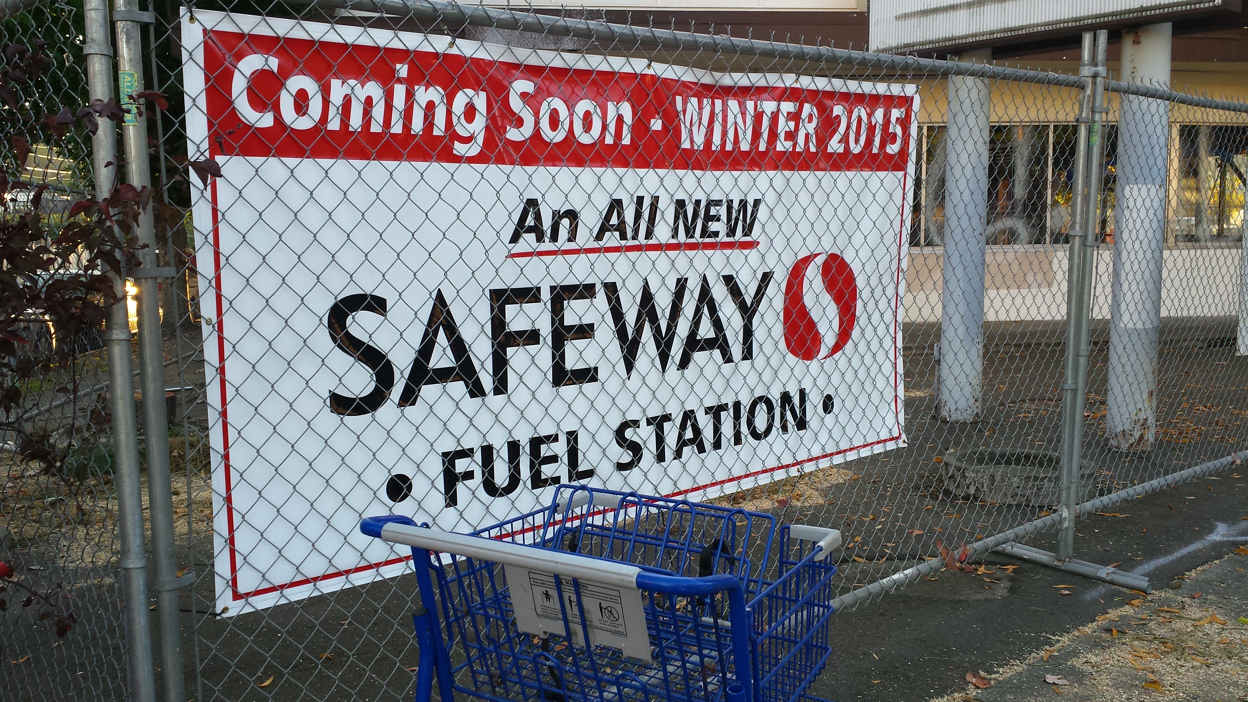 About a month ago, I drove to my local Safeway only to discover that construction had begun behind a shut-down restaurant which is located west of the grocery store. I was also surprised to see that one of the two entrances that go from the side-street to the Safeway parking lot was fenced off. That seemed really strange. I thought Safeway must have charged a lot of money for that privilege.