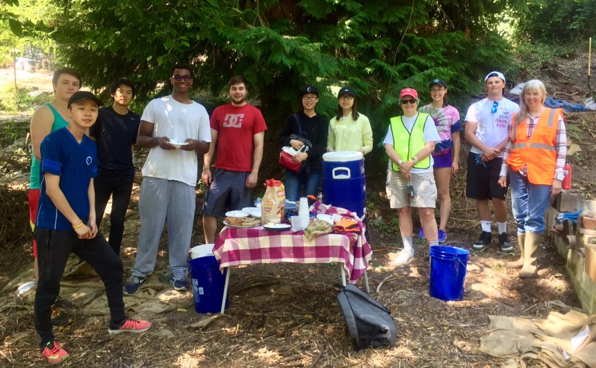 It seems like I think every work party we have is the best. That was true on this day too. Eight students from the University of Washington’s Introduction to Environmental Science class, one student from Garfield High School, one neighbor and three GreenFriends members came together to do restoration work in the Greenbelt.