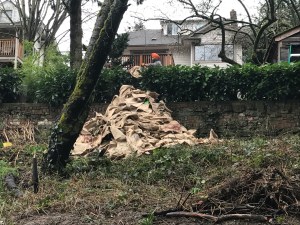 While they were doing that, the rest of us moved 1000 square feet of burlap bags from the street into the Greenbelt. I had no idea we would be able to move all of it in an hour, but we did!