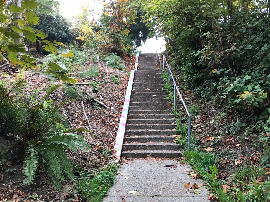 Another way to tell what has been accomplished is to compare the left side of the Hanford Stairs to the right side.