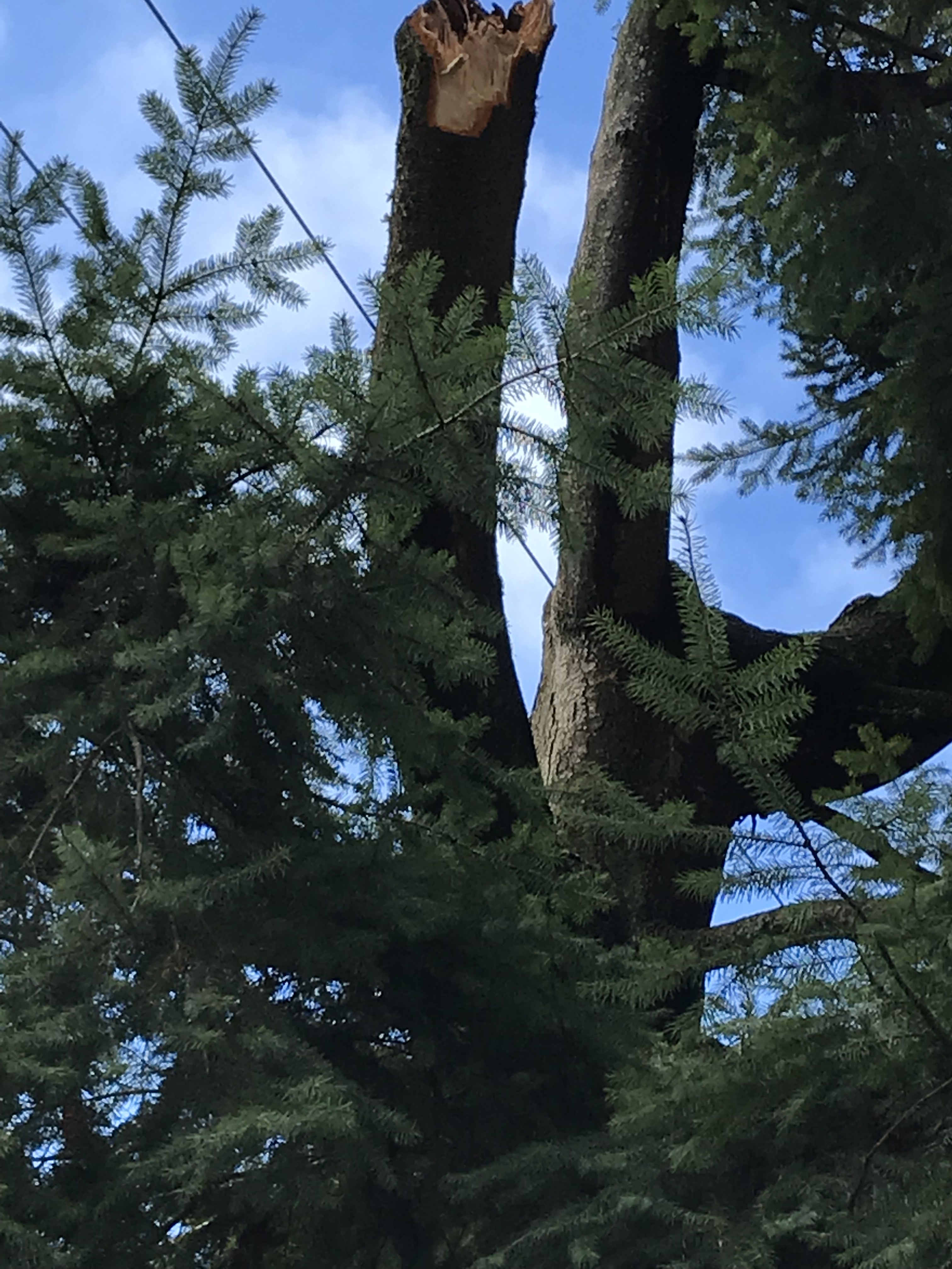 The tree was one that had been cut away from power lines numerous times in the past. I soon discovered it wasn’t just a few small branches that had broken off, it was a BIG one.