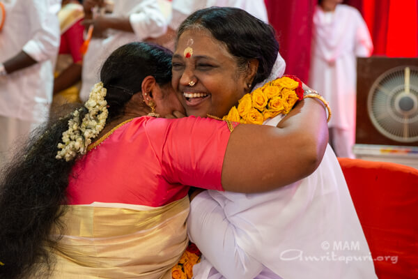 I learned later that many previous alumni and teachers attended the event, in addition to the current orphanage residents. They had also received Amma’s darshan that day. To read more about the festivities… and to see photos… go to: https://www.amritapuri.org/76883/19parippally.aum.