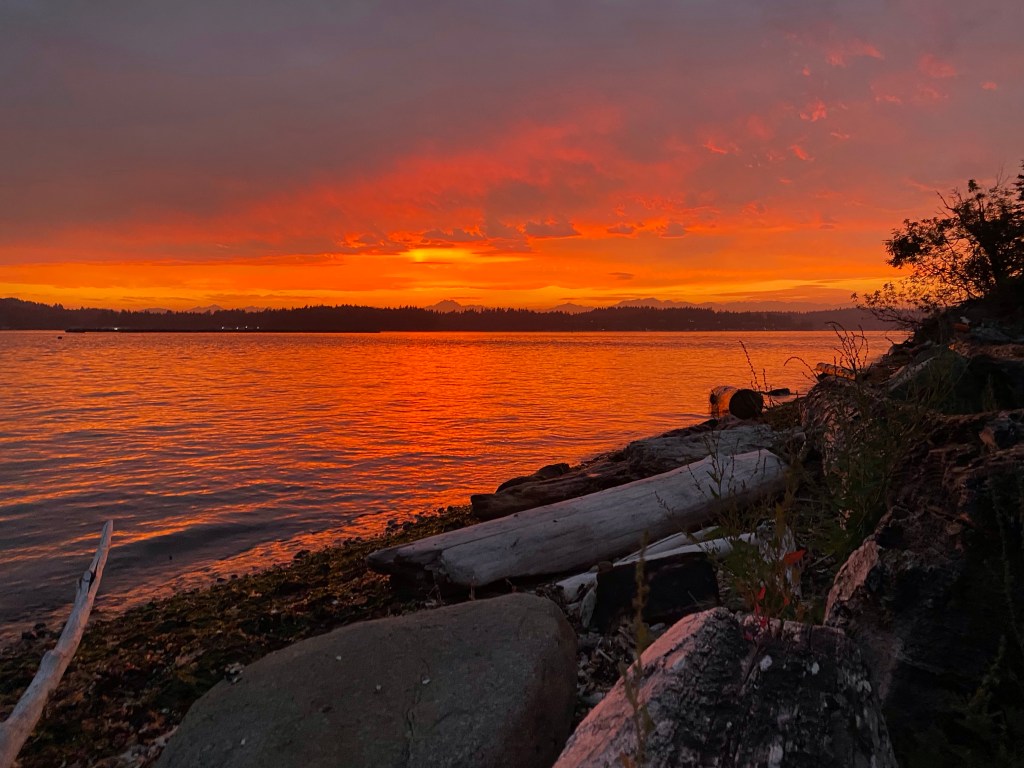 Amma’s mother passed away this week. (Amma is my spiritual teacher.) Her mother was 97. On the day she passed, Vedavati snapped this sunset photo. It looks like there are two suns but it is more likely to be a reflection of some kind. Still, it seems significant that it happened on the day Amma’s mother passed.