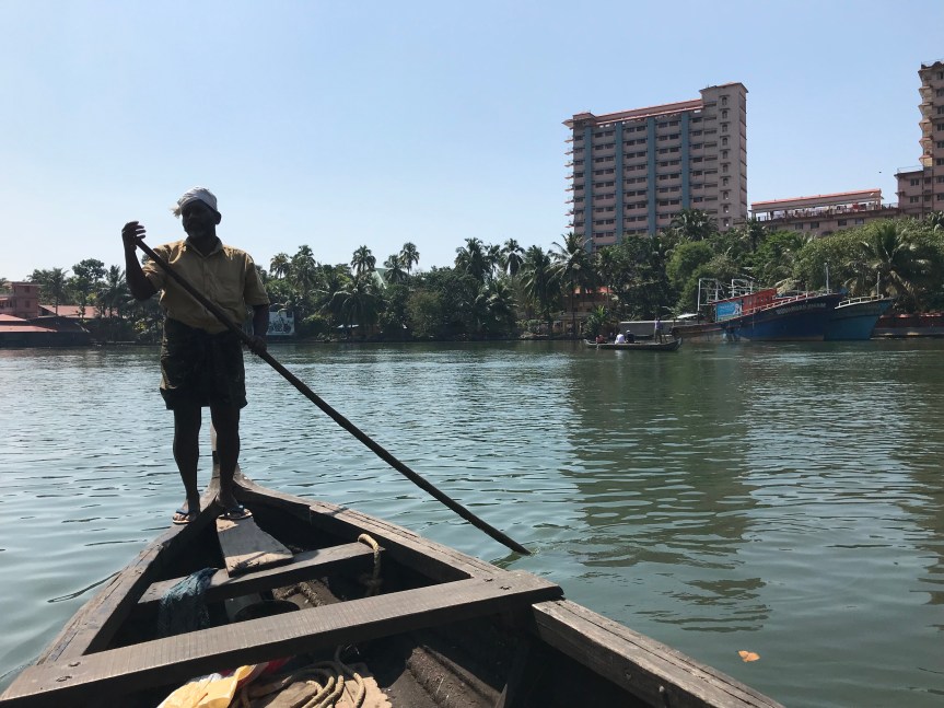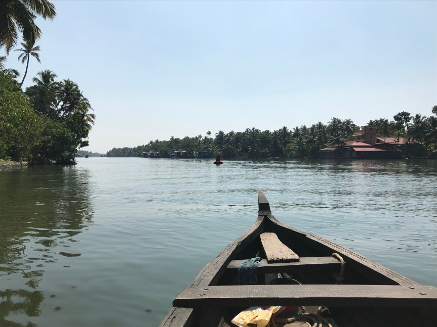 Gopika and I decided to take a canoe back to the ashram yesterday after visiting Amma’s Vrindavan Field, the Ayurvedic Herbal Garden, and the Ayurvedic College, School of Engineering and School of Biotechnology grounds. I will write about our visit to those places another time but wanted you to see the canoe photos now.