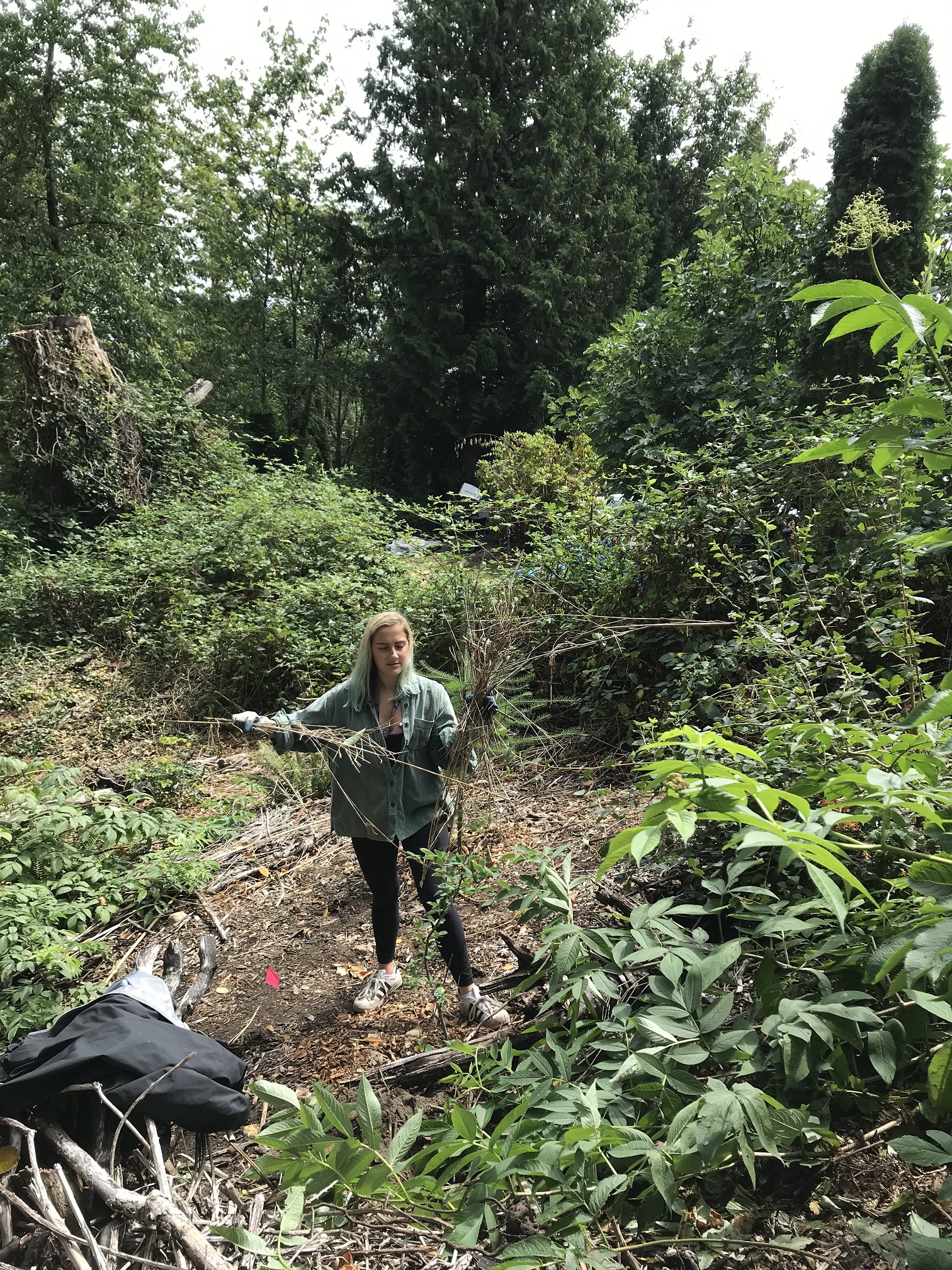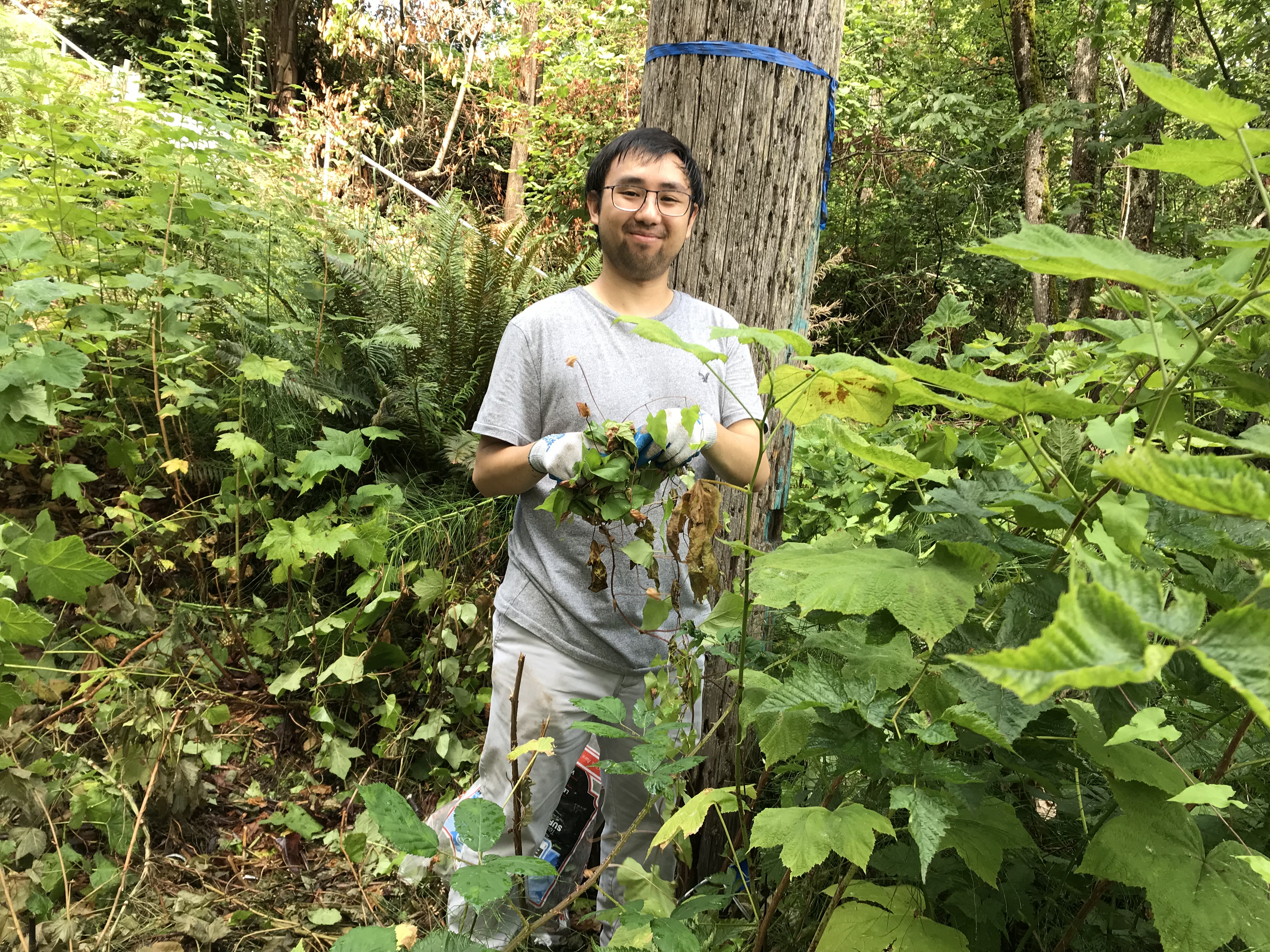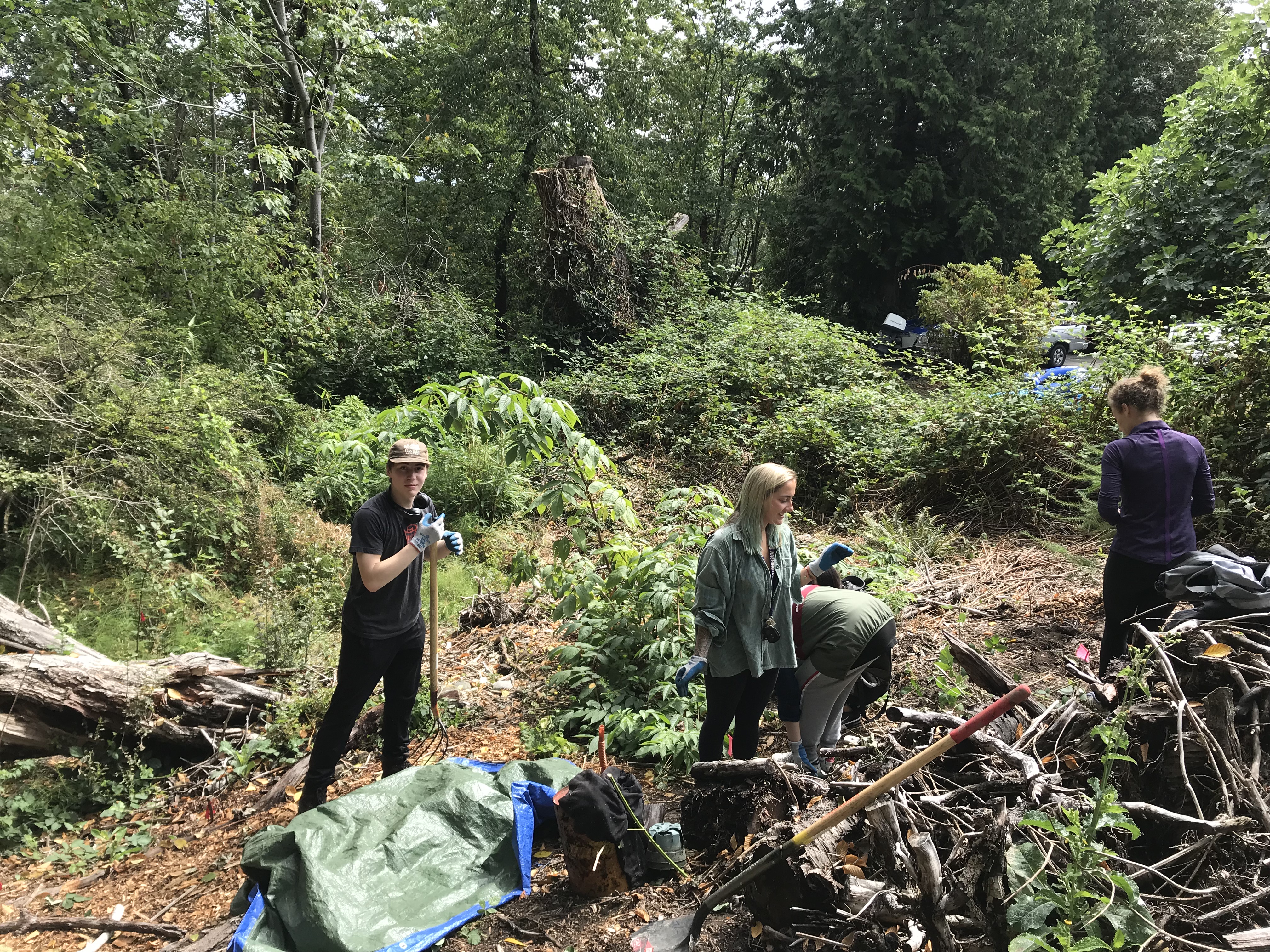 During our August 10 work party, two team leaders, seven students from the UW’s Introduction to Environmental Science class, a mother and daughter from our neighborhood and a volunteer who found us on Green Seattle Partnership Event Page participated. Three of the students had also attended our August 3 event. The August 10 work party was unusual in that most of the volunteers had previous restoration experience.