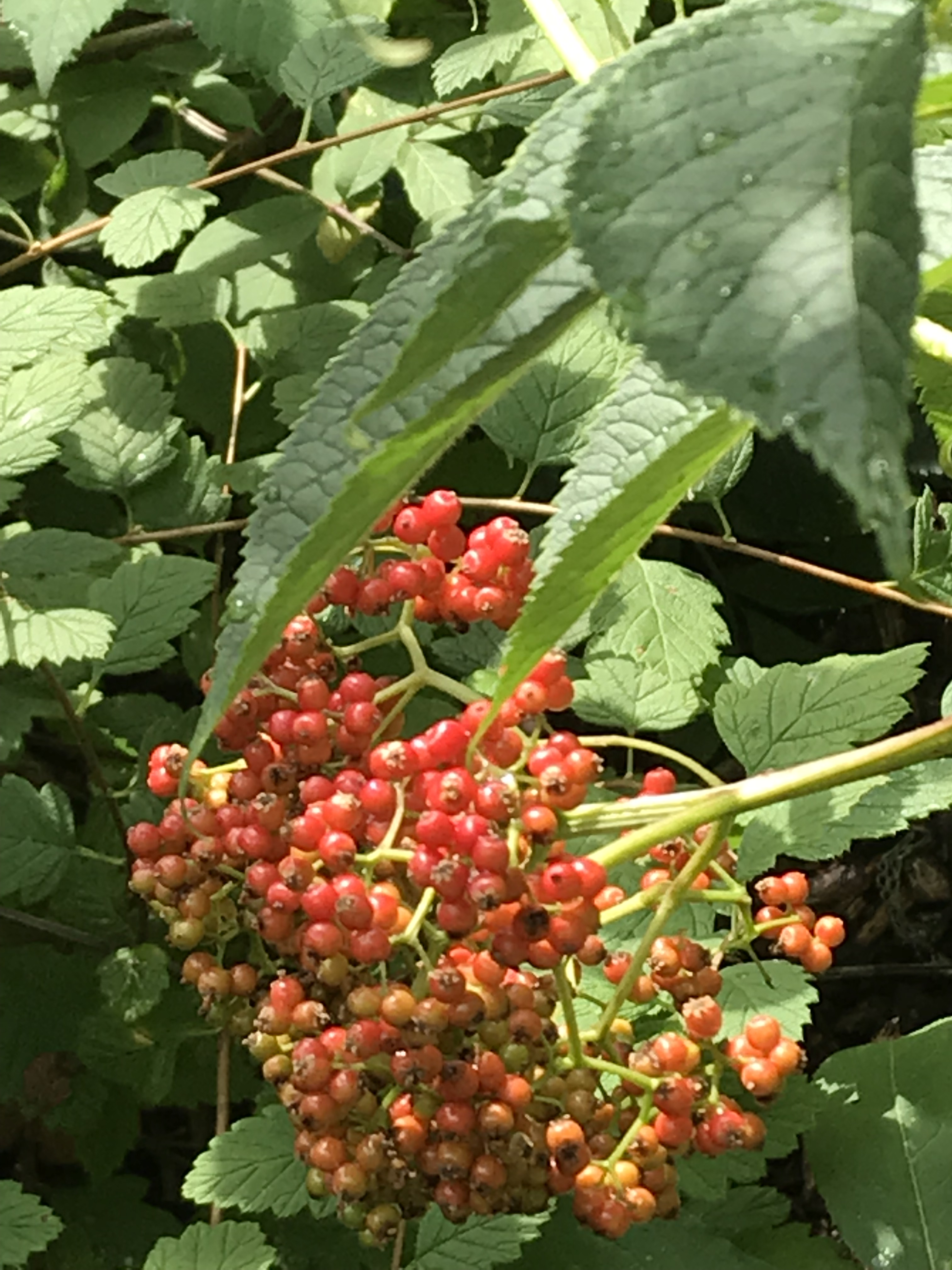 I saw the first berries on our elderberry plants during this work party. They were from a red elderberry. We have planted red, blue and black elderberry shrubs. I wonder if any of the others will fruit this year.