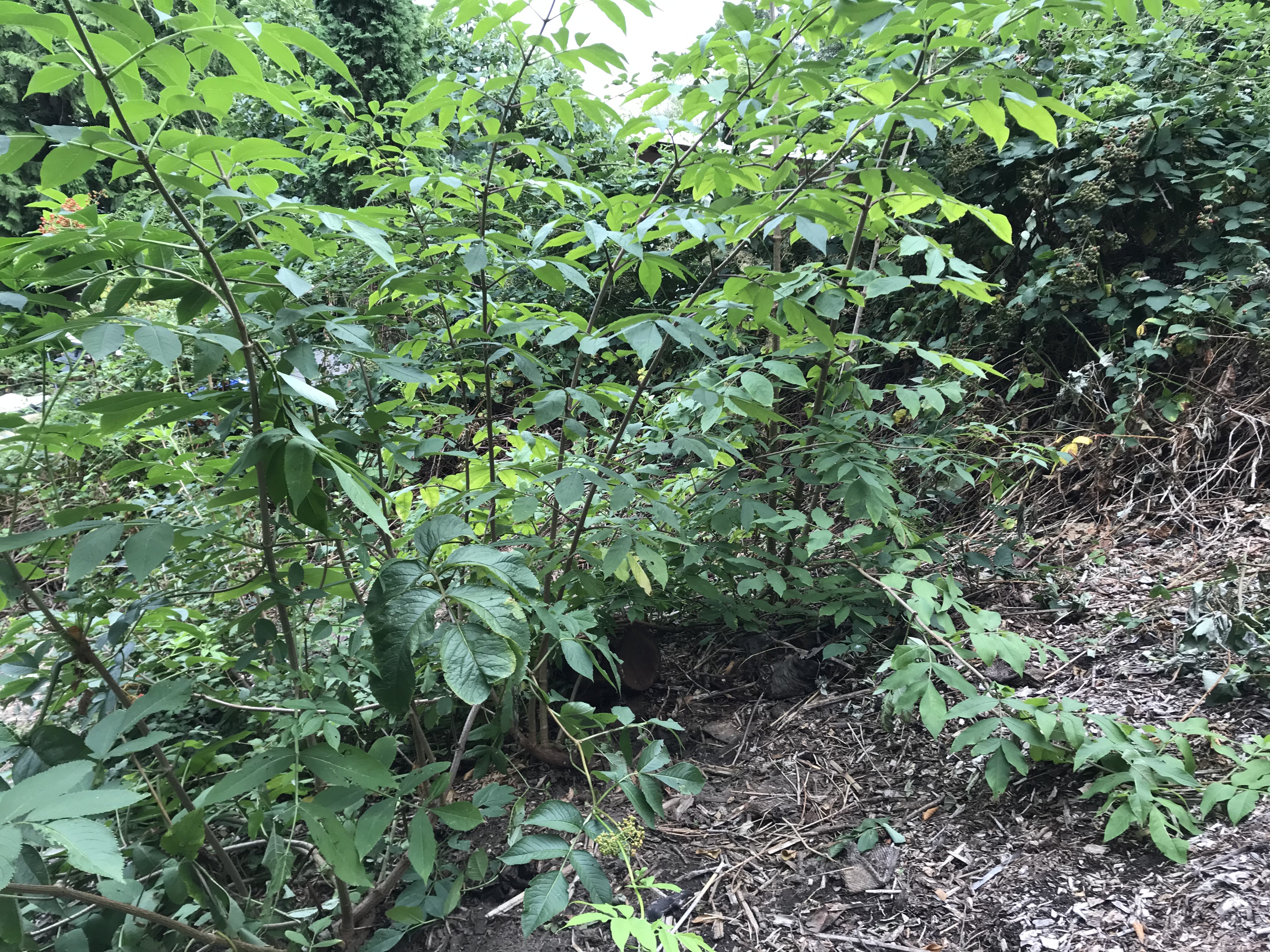 The second team removed blackberry shoots and weeds from an area on the southeastern section of the site. They were even able to remove blackberry vines from under the big elderberry plants. Some of the elderberry plants are now 12-16 feet tall.