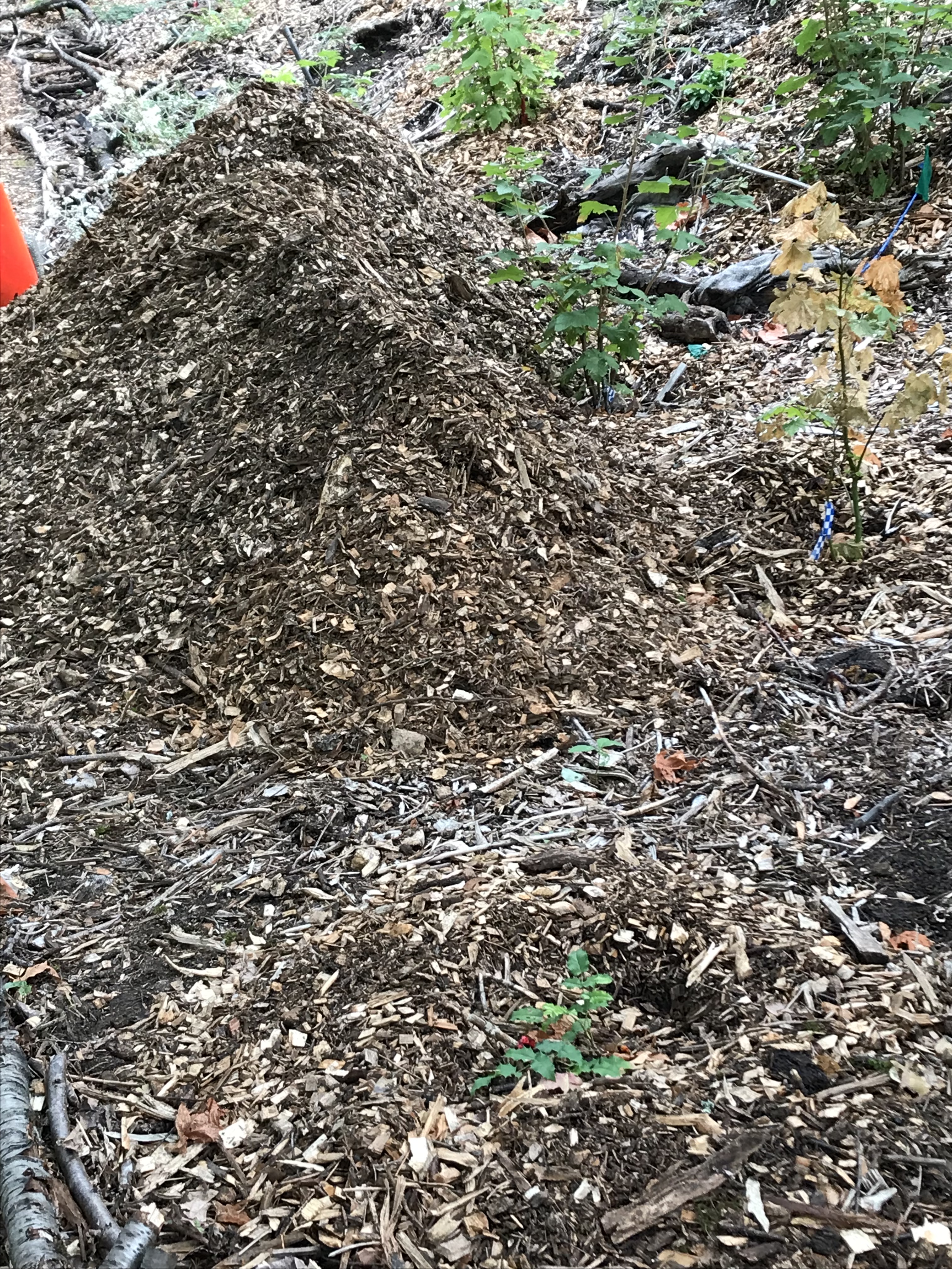 We had made three smaller wood chip piles inside the Greenbelt and covered about 250 feet of path with new wood chips.