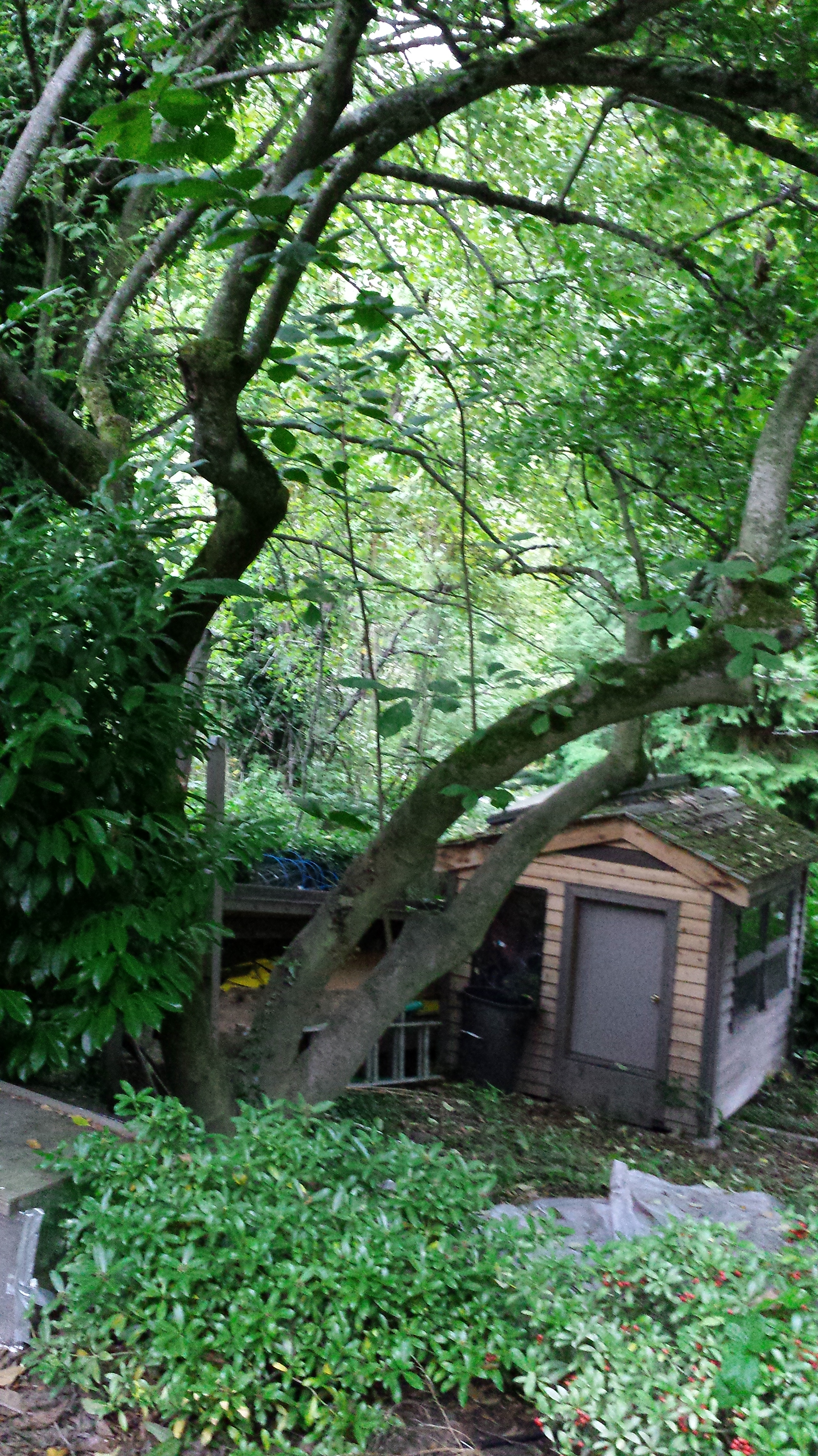 The shed in my backyard provides boundaries for all of the tools and gardening paraphernalia that I use. I also store the jars I use for canning there. But the shed was not always a shed. Until three years ago it was a 7′ x 7′ tree house!