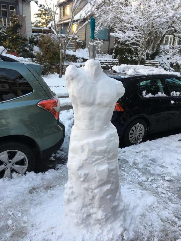 When I checked my email later in the day, I discovered that neighbors had posted photos of “snow art” that they had seen on North Beacon Hill. I was impressed.