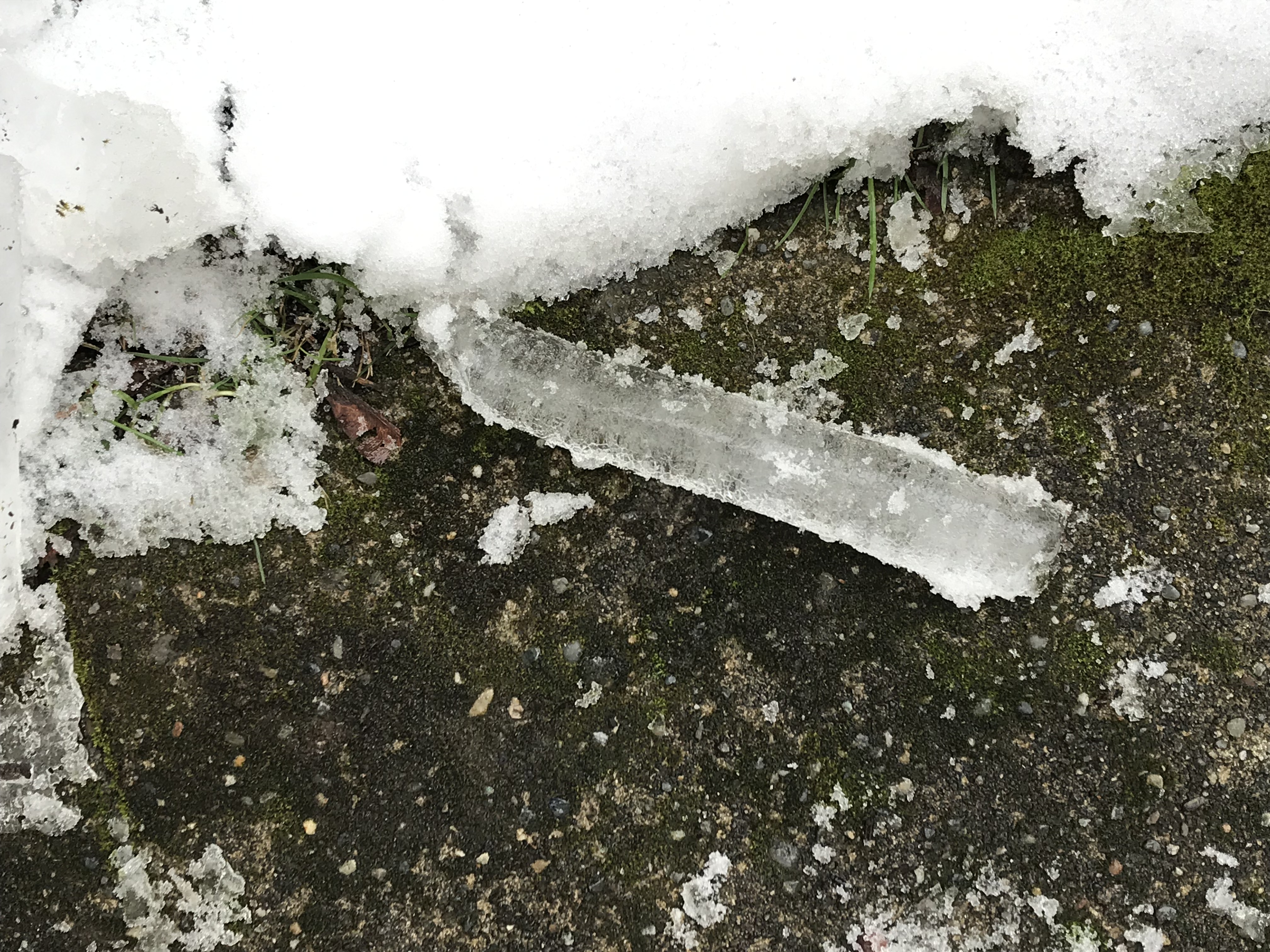 I saw something else that made me curious. At first I didn’t know what it was, but soon realized it must be a thick icicle. It was more than an inch in diameter. There were many fallen icicles on the ground nearby.