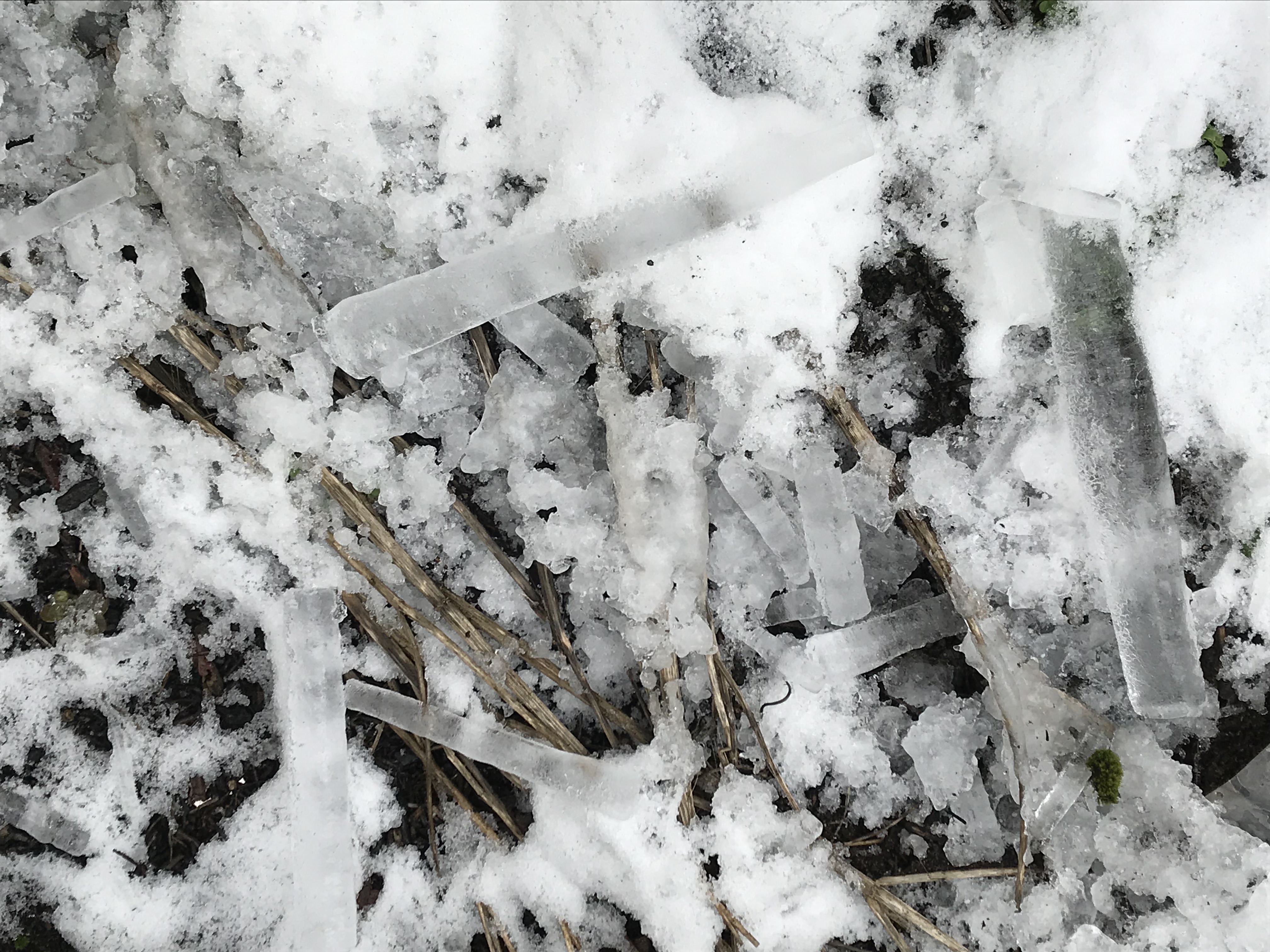 Later that day, I walked outside and saw many graupels in my yard .