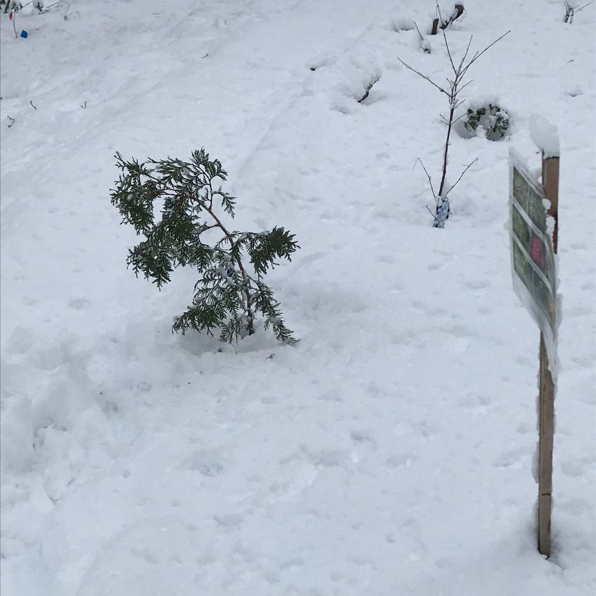 I removed the snow from the tree I had freed before. I did the same with five other trees on that outing. In the process, I wondered if I was hurting them by freeing them when I knew they were just going to get buried again.