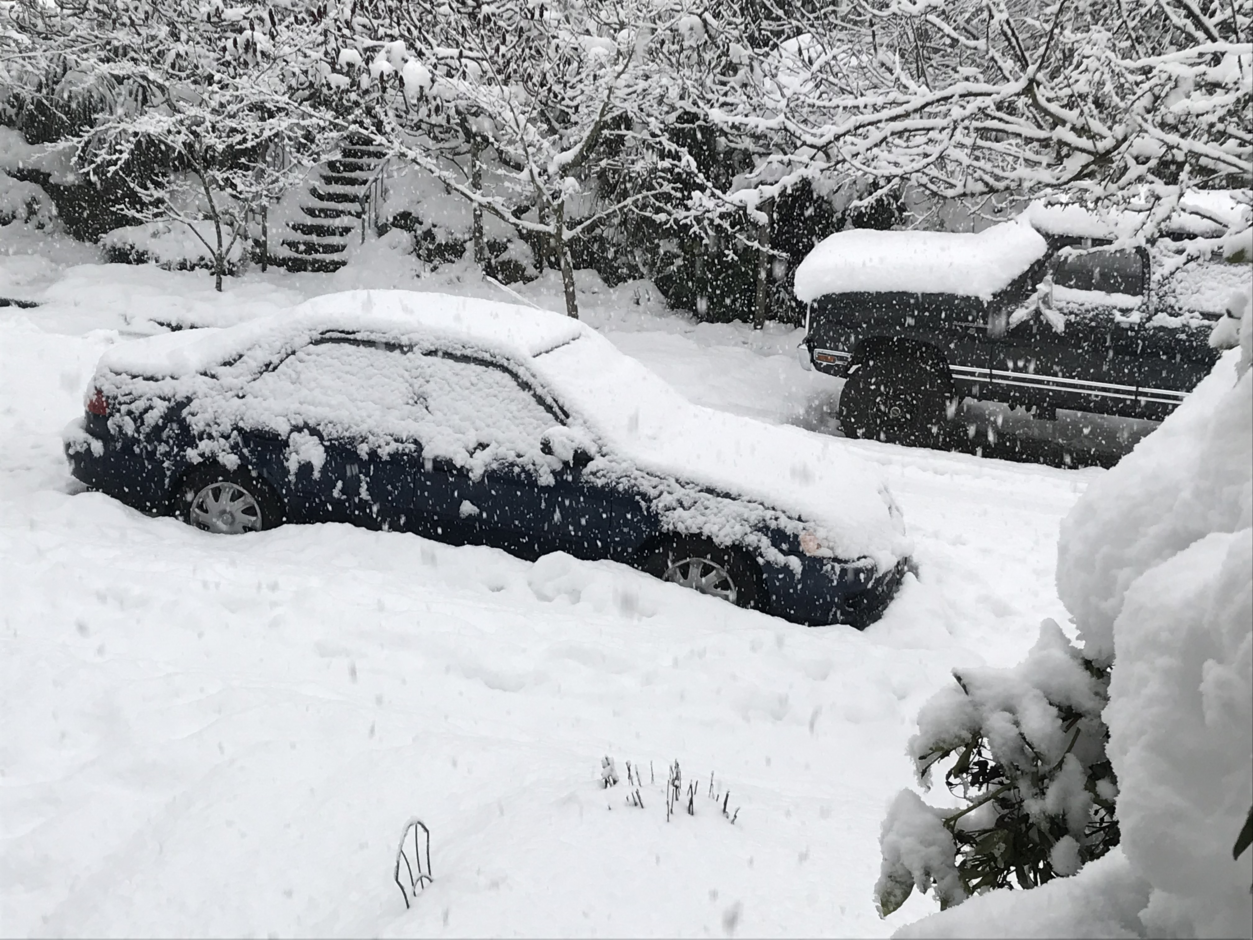 When I did eventually try to get into my car, the front door was frozen shut. During the second series of snowstorms, I decided to park the car on the street and to remove the snow at least once a day.