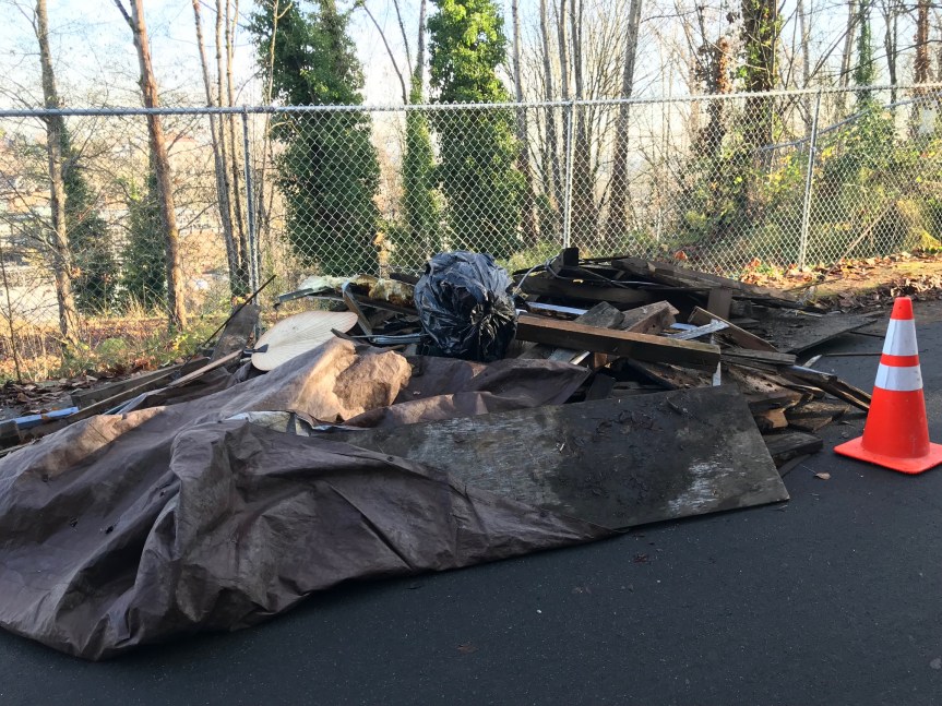 This pile of dumped garbage covered the sidewalk and more than half of the width of the street.