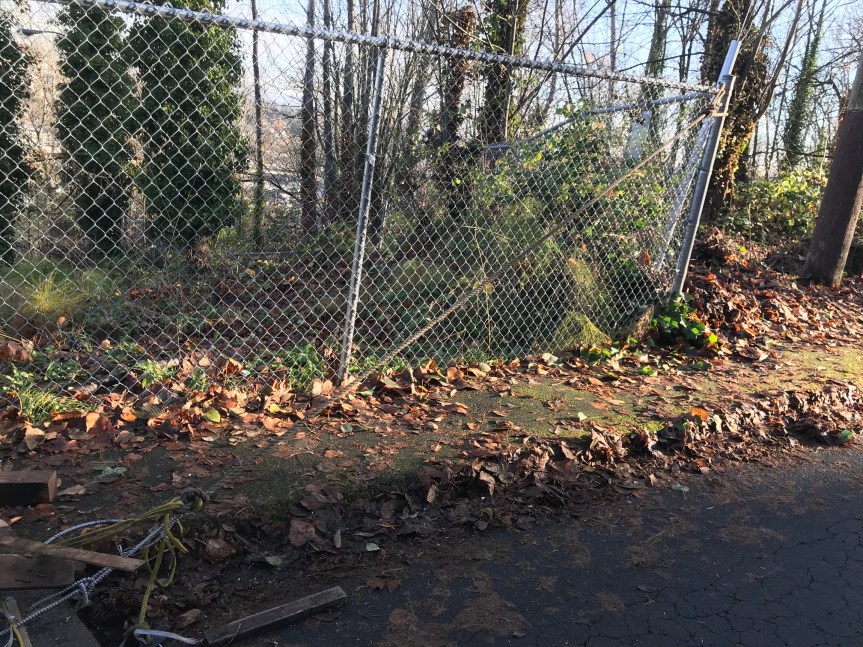 Soon after I was given the red rose yesterday, I had a completely different experience. I was driving to an appointment along 25th Avenue South. That block, which is just north of my house, for the most part has Greenbelt on one side of the street and a fenced off property belonging to Sound Transit on the other side. The land goes over the light rail tunnel.