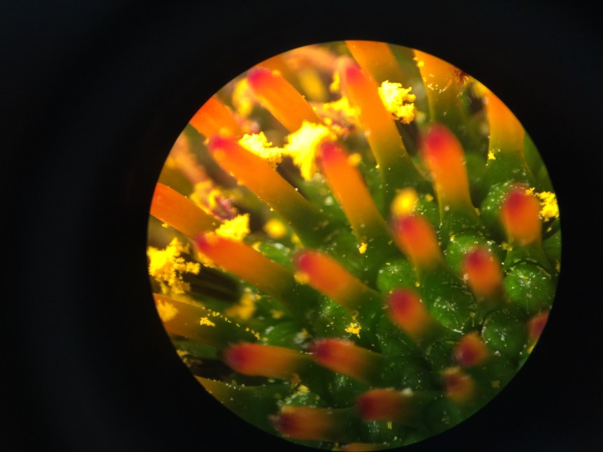 This week’s Weekly Photo Challenge is to share a photo of something rare. I believe that the microscopic nature photos I have been sharing on my blog are rare. This is one I took yesterday of the center of an Echinacea flower.