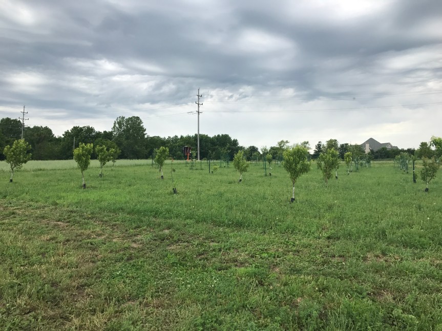 Beyond the vegetable field, there was an orchard. This photo shows only half of it. The trees had grown a lot since I had seen them last.