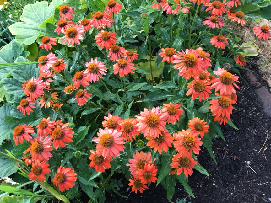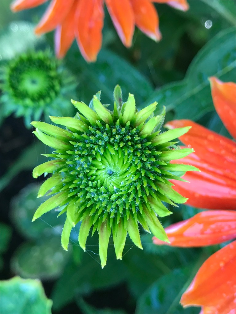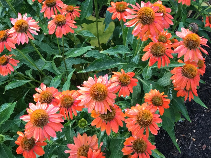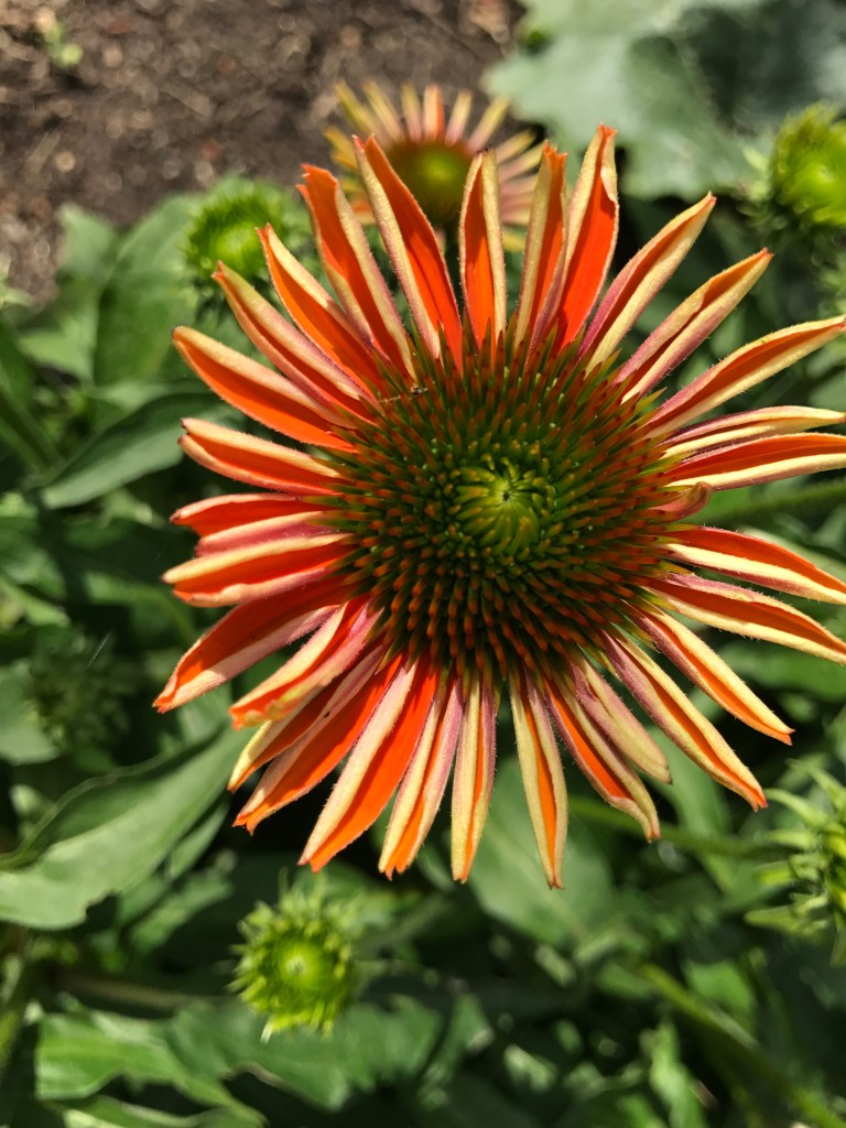 Last summer, I purchased my first echinacea plants. I’ve particularly enjoyed watching this one grow. It gets more sun than the other two and the difference is remarkable. One attribute that I find fascinating is that it has blossoms in so many stages of development at the same time. I am also enjoying the fact that the plant has at least four times the number of flowers-in-the-making than it did last year.