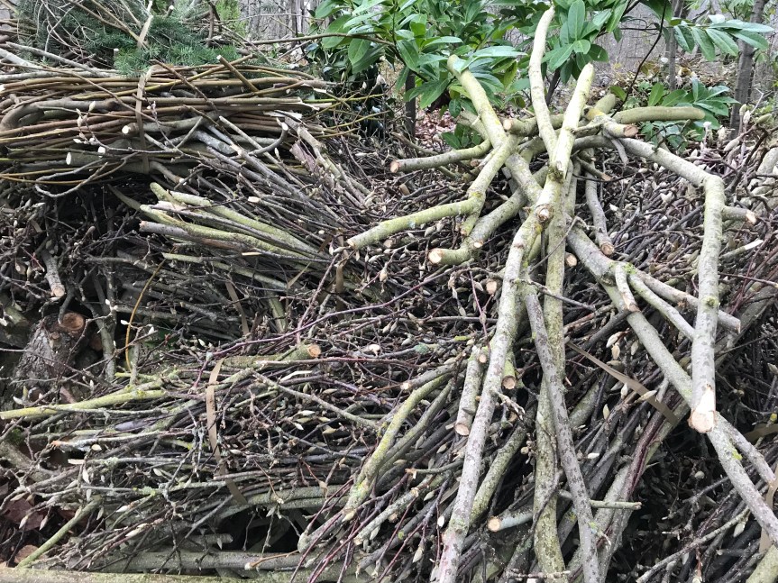 Soon after I came home from India in mid-January, I found that someone had cut down a large tree somewhere and then dumped it in a part of the Greenbelt that we had cleared. I believed it was done by a “professional” company because all the debris had been sorted by size and much of it had been banded before it was dumped.