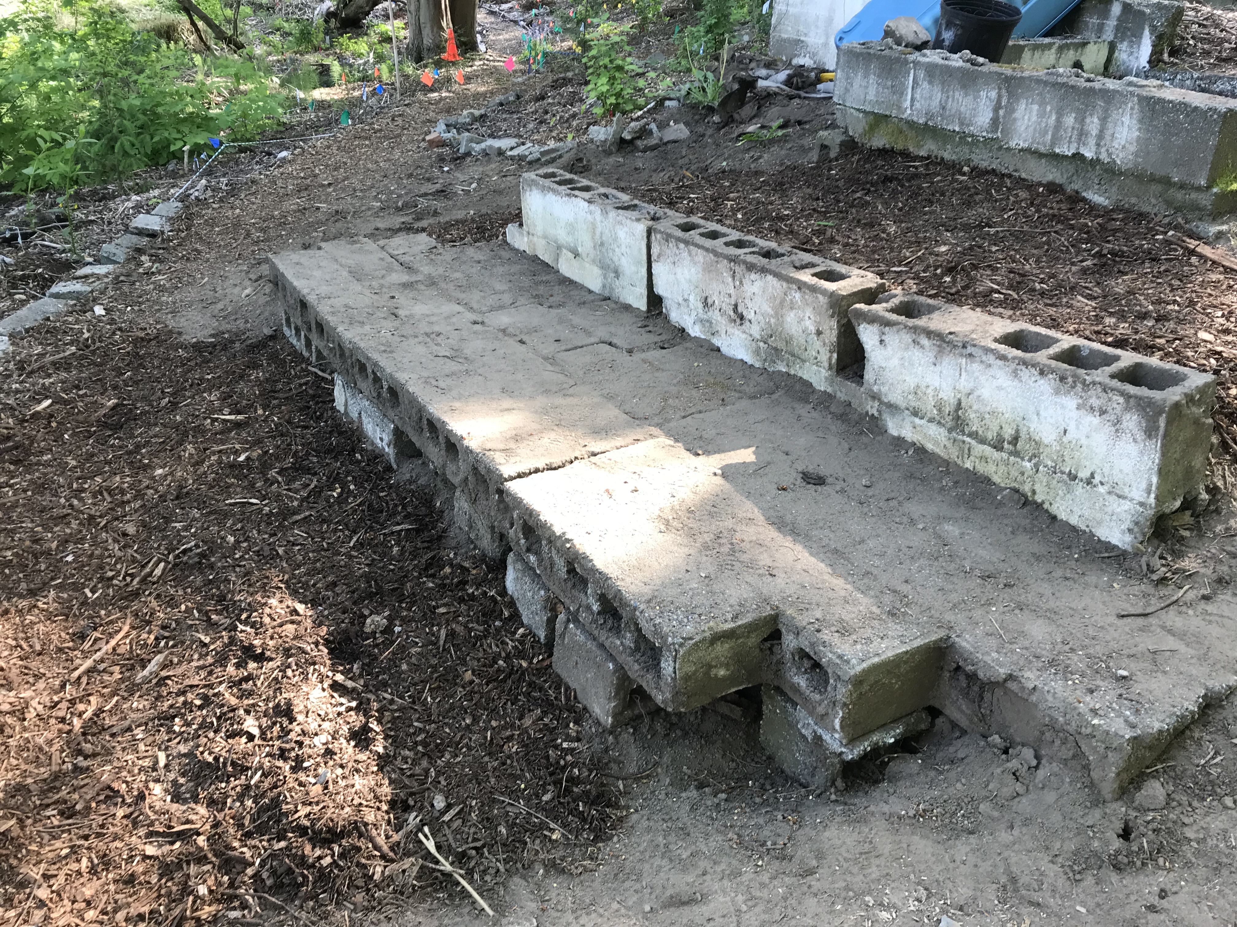 On August 1 and 2, another volunteer worked seven hours in the same area. Once he cleared some of the ground, he and I built two drying racks to use at future work parties. (When we cut down blackberries, ivy and bindweed we put them on drying racks so they can’t reach the ground and re-root.)