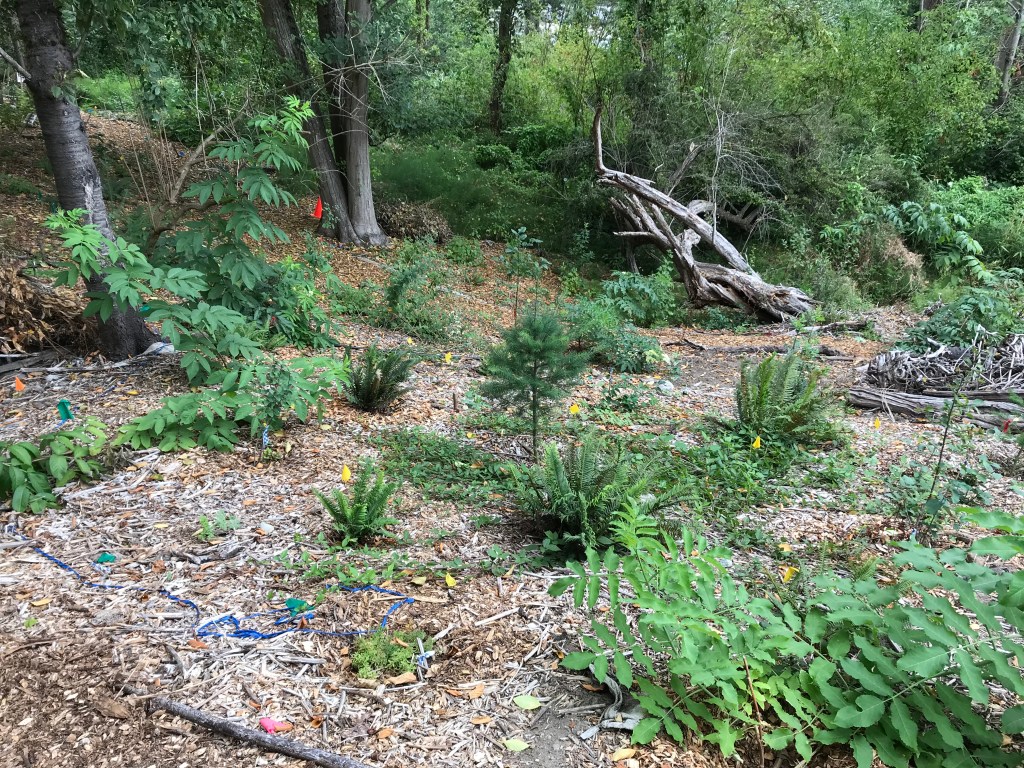 My neighbor John and I started working in an area that runs parallel to 25th Avenue South several months ago. Volunteers also worked on it during some of the July work parties. During one of those work parties, John removed enough blackberry vines that he broke into a space that he and I had cleared last Spring. I was so excited to see the two spaces connected.