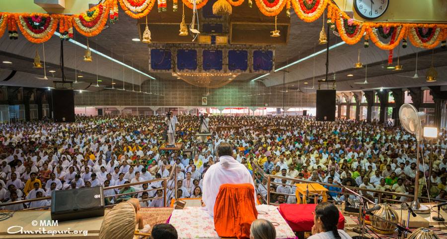 I still remember a time in the early 2000’s when I walked into the temple on a day that Amma was passing out lunch. I was feeling down and was wondering why I was in India. I wanted to go home. Amma started singing Amrita Vahini while she was serving us lunch. By the time we had finished the song, my bad mood was gone and I was wondering why I wasn’t making plans to live there permanently. I couldn’t even remember why I had been so down the hour before.
