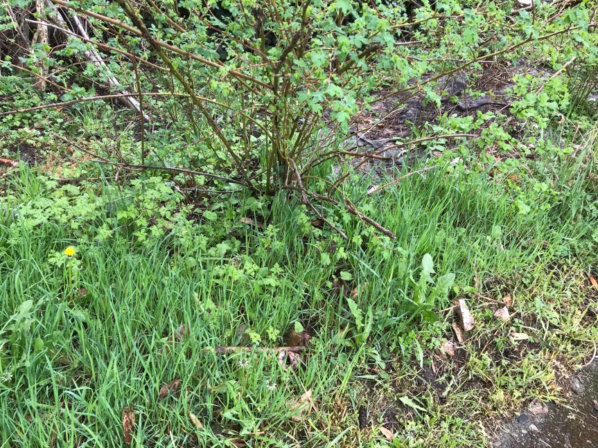 When those stairs were built, the Department of Transportation planted native shrubs on both sides of the stairs and then covered the area with wood chips. It was beautiful. However, no one maintained the property and over time the land, including the new plants, became covered with bindweed vines. There were some blackberry vines too, but in that area the bindweed ruled. In fact, the bindweed completely covered most of the shrubs. Sometimes, there was no way to know there was even a shrub there; they just looked like mounds of bindweed.