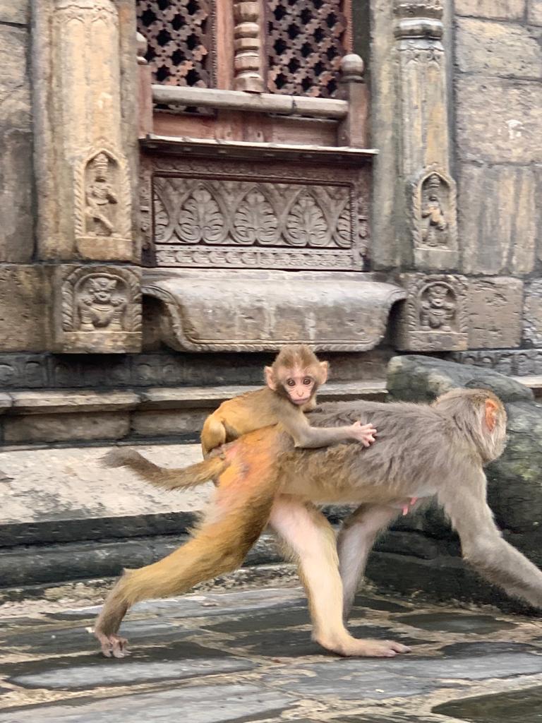 The Monkeys of Kathmandu can be seen carrying their babies around the temples.