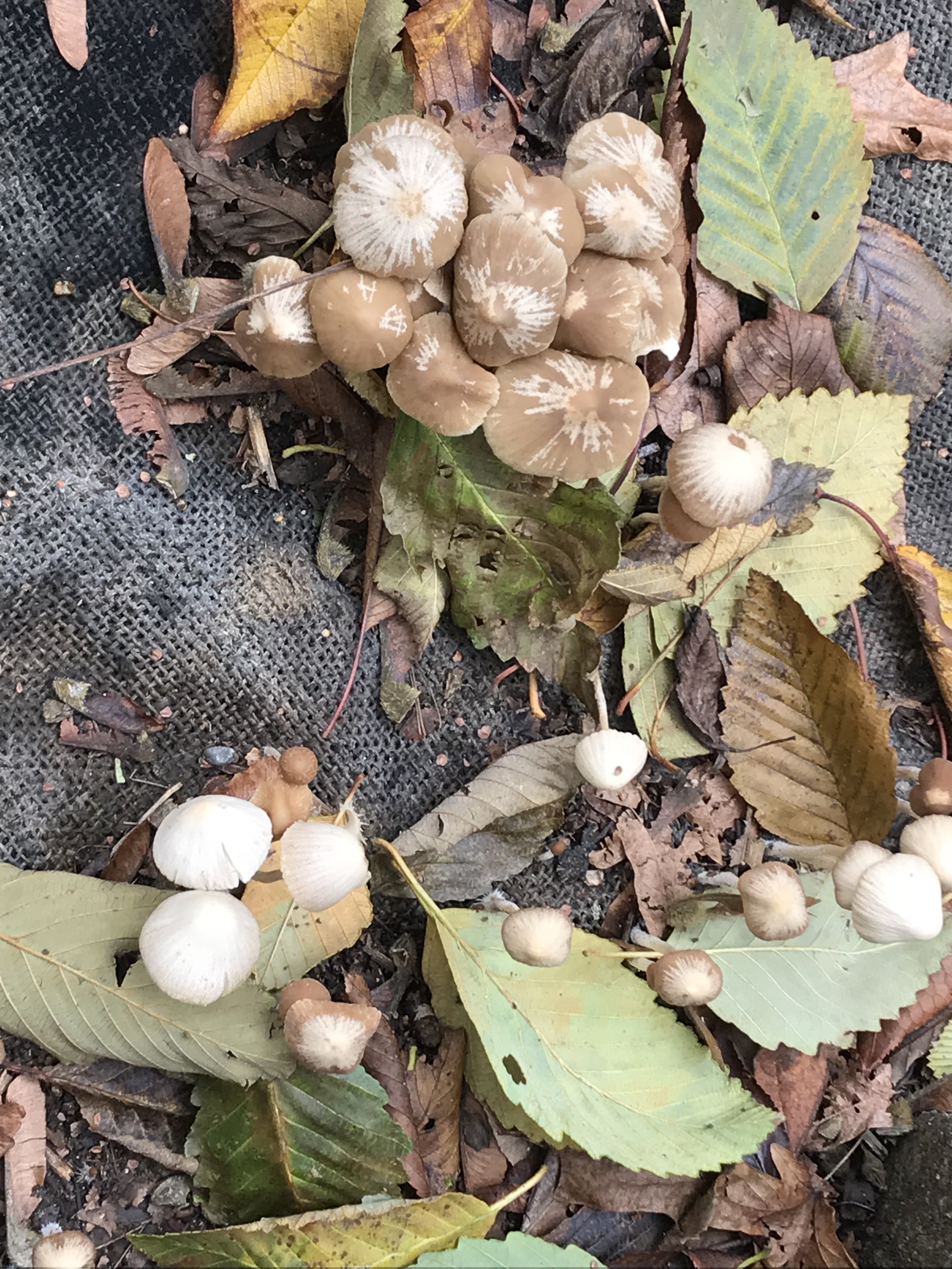 When I looked at the two photos together and compared them to the new photos, I realized I was seeing the same mushrooms. They had indeed grown this big in one week. Now, they were near the end of their life cycle.