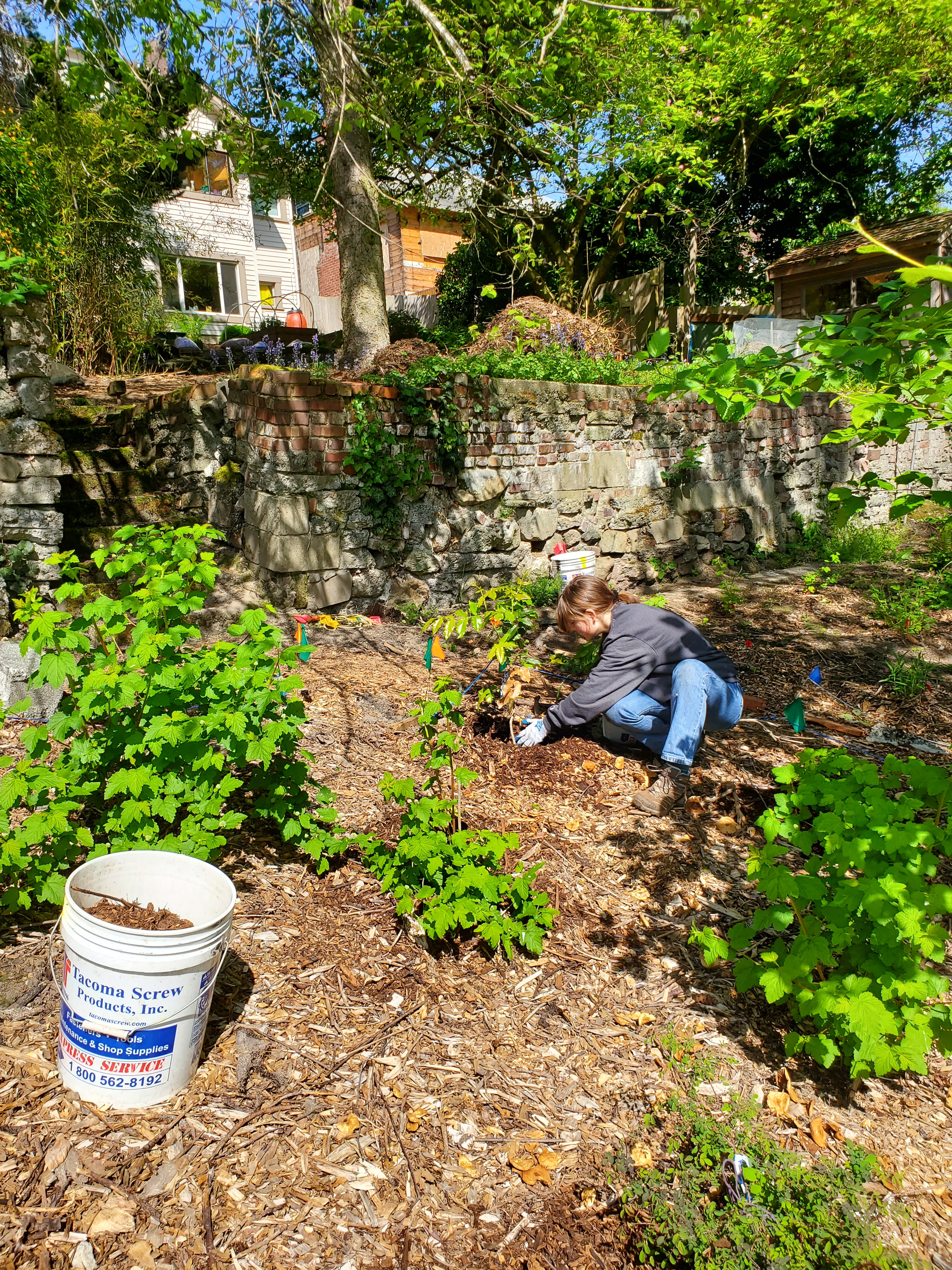 I called John (neighbor) and asked if he would carry the wood chips we use for mulch to the various planting areas. Thankfully, he was available and came right away. With his help, we were able to finish the project by 2:00 pm!