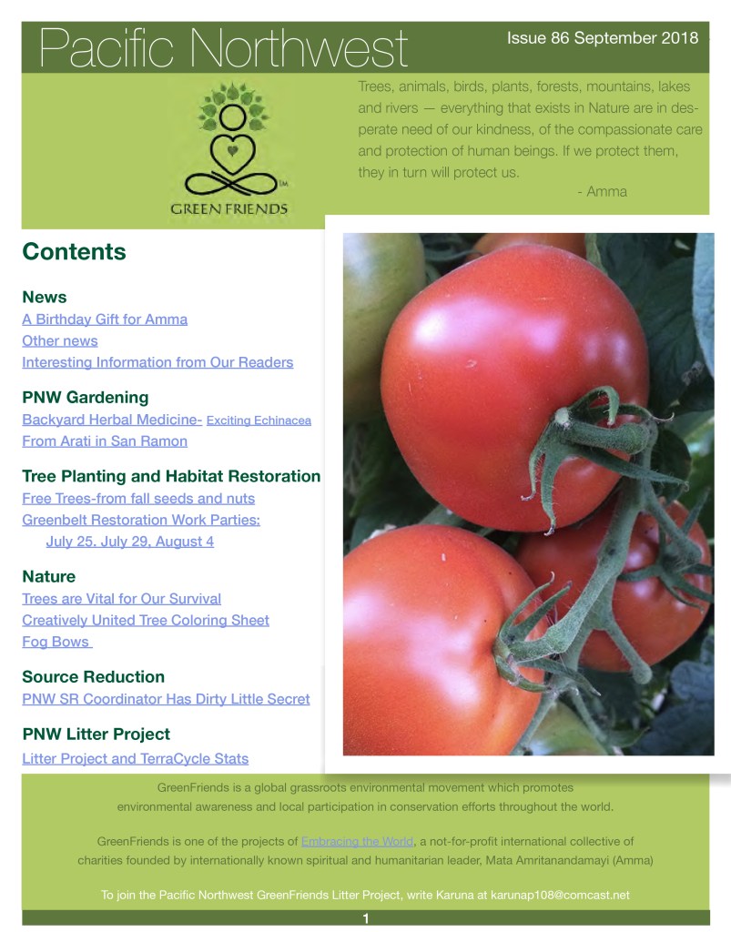 We have certainly seen evidence of the long life of plastic in the GreenFriends Greenbelt Restoration Project that Seattle Satsang members are leading. The areas we are restoring have been covered by blackberry, ivy and bindweed vines for 30-60 years. With the aid of Green Seattle Partnership, the City of Seattle Parks Department, and volunteer groups such as students from the University of Washington’s Introduction to Environmental Science course, we are helping to return this stretch of Greenbelt to the beautiful forest it once was.