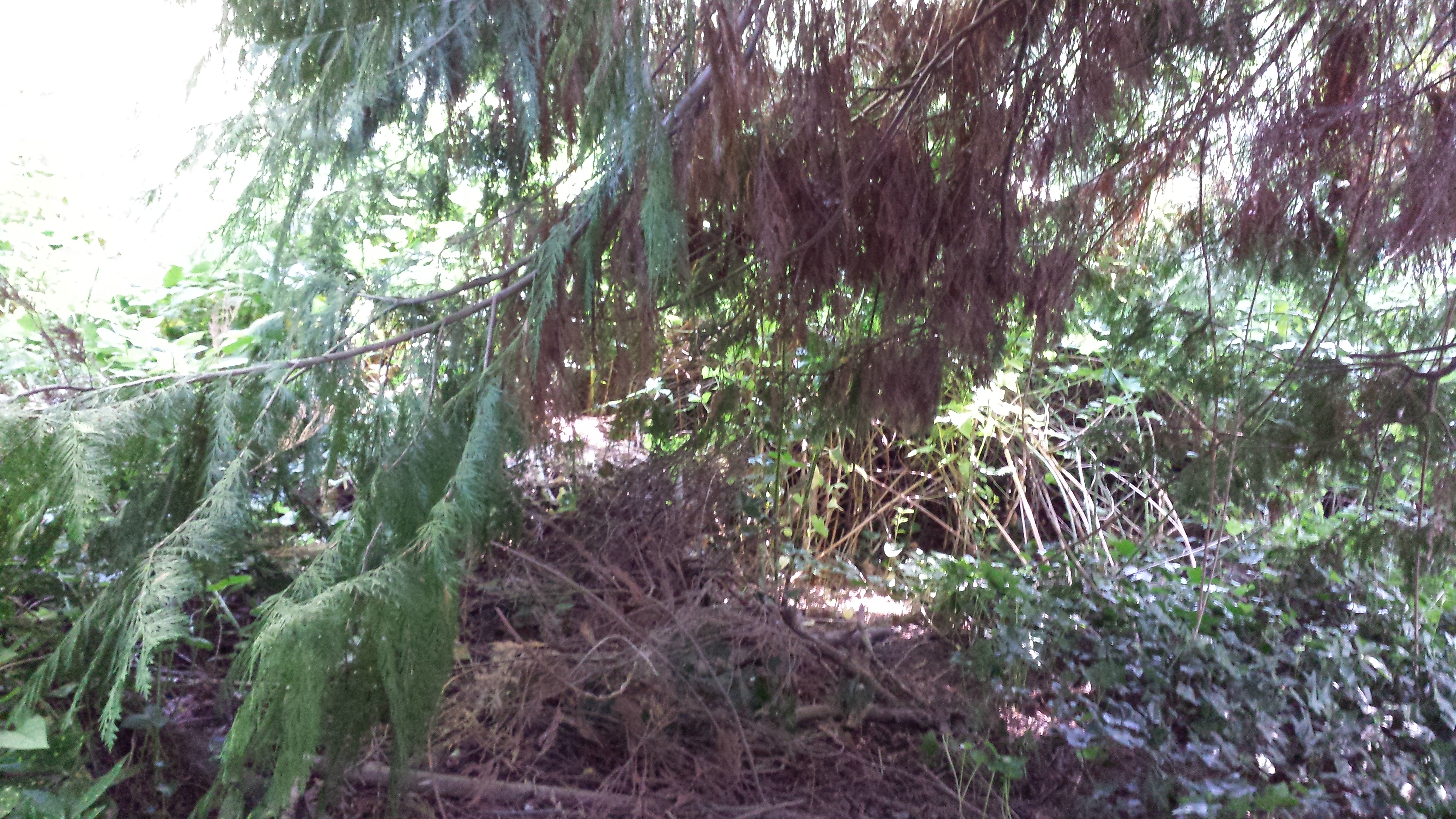 The next day, Yasas helped me with the clearing. We sawed off dead branches, cut down a few blackberry vines and generally cleaned up the space. We placed some of the leaves on the ground to sit on.