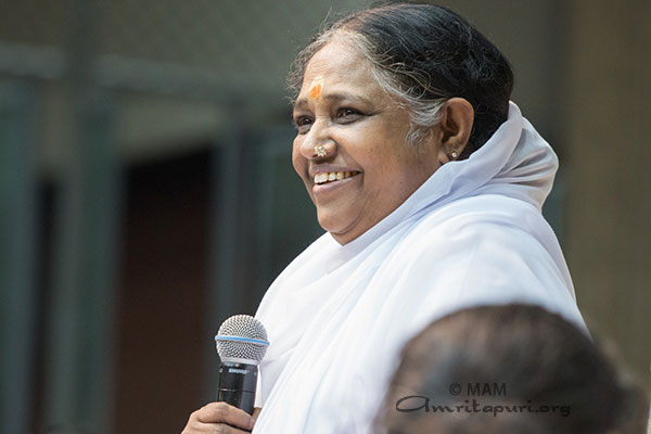 The circumstances of life will always keep changing. Change is nature’s unchanging law. However, it is we who make experiences bitter or sweet — our mind and our attitude. As long as we are unable to bring our mind under our control, sorrow will continue to hunt us down. However, once the mind comes under our control, then no problem or tragedy can devastate or paralyze us. In reality, the foundation of happiness is gratitude. When the mind becomes filled with gratitude, we will spontaneously become happy.” -Amma in New Jersey, June 29, 2017.