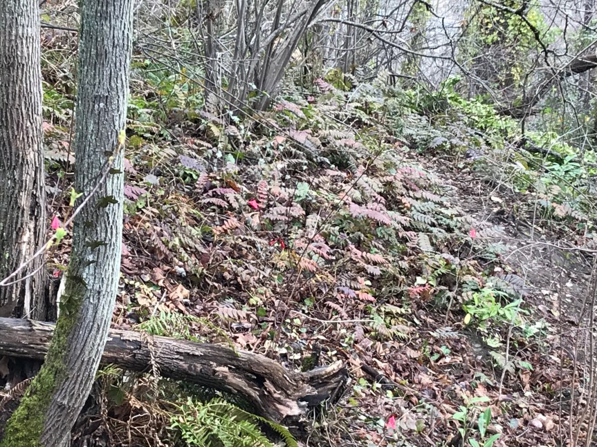 While most of the volunteers were clearing the section on the southwest part of the site, a smaller group worked in the southeast area. The photo below was taken of this space the end of September 2018.