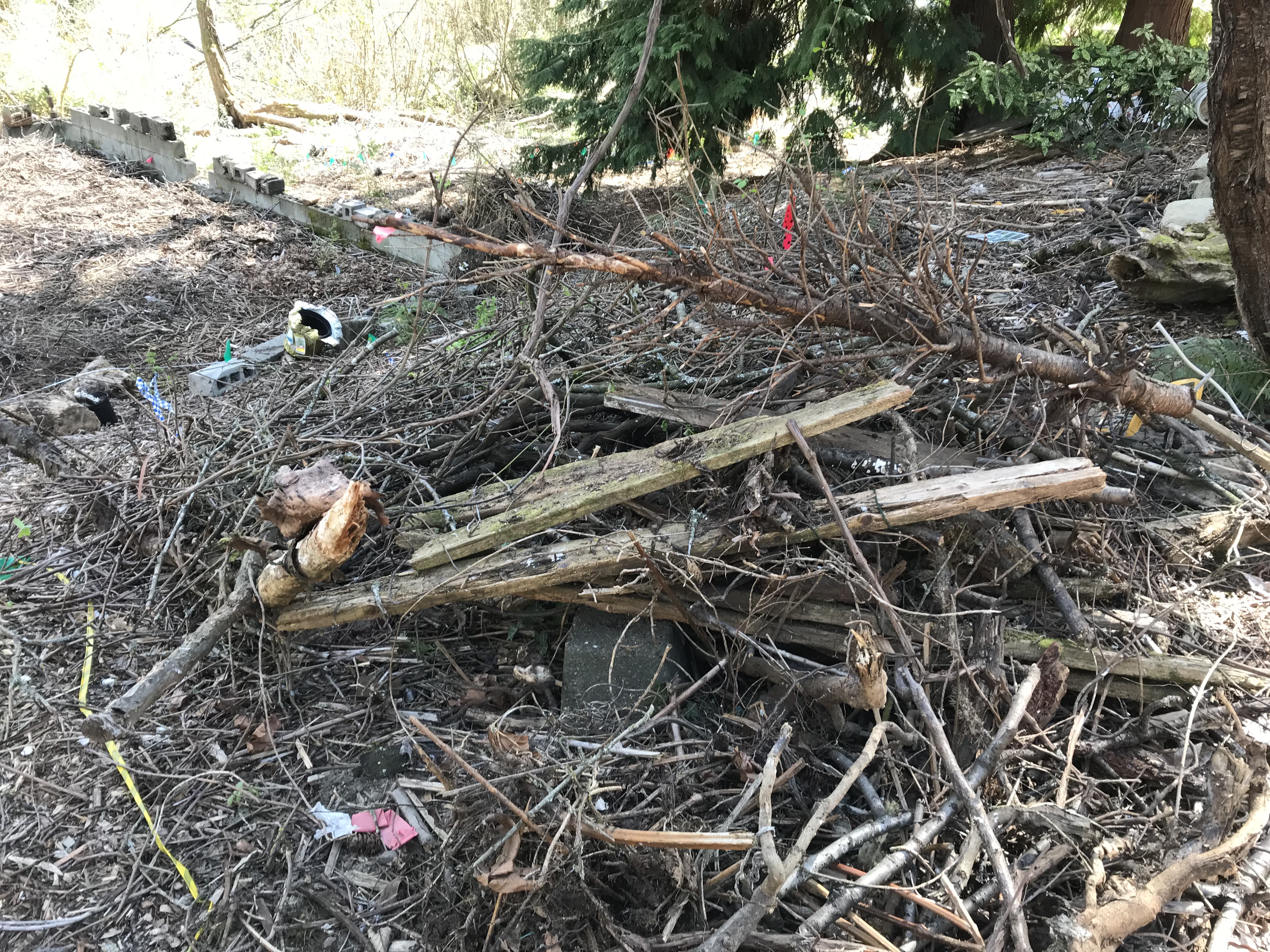 These two piles were located at the southwest part of the site. We also removed a pile of debris in the southeast section of the site and one north of the Hanford Stairs.