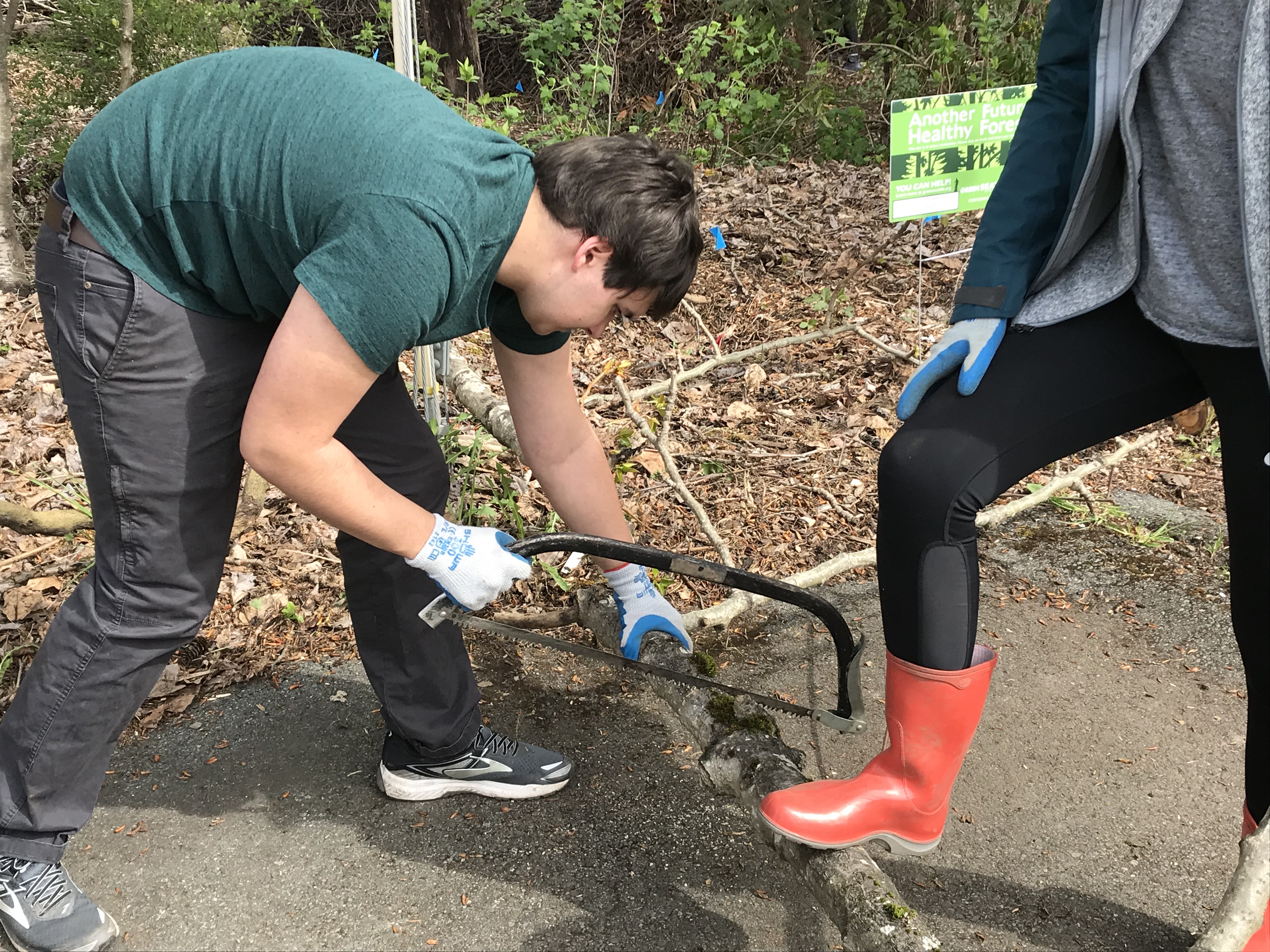 Later, one of the student teams removed some of the smaller fallen tree branches that were near the native plants.
