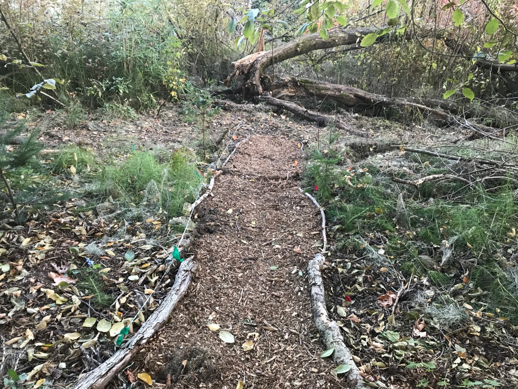 We had made three smaller wood chip piles inside the Greenbelt and covered about 250 feet of path with new wood chips.