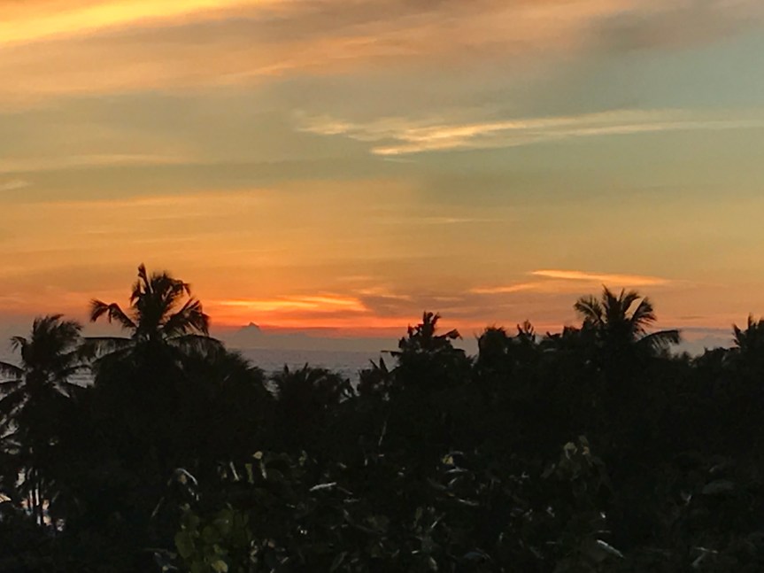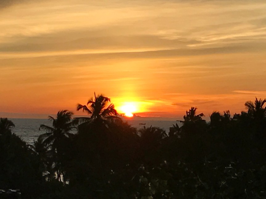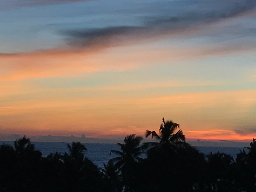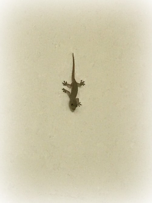 The gecko was located just below the place where the ceiling meets the wall. I watched it for some time. I was struck by how long it stayed in one place. I knew geckos eat insects so I decided it was waiting for one to come near. The only insects I’ve seen in the room are mosquitoes so it was probably waiting to eat one of those. The gecko was more patient than I was, so in time I stopped waiting for it to move and left the room.