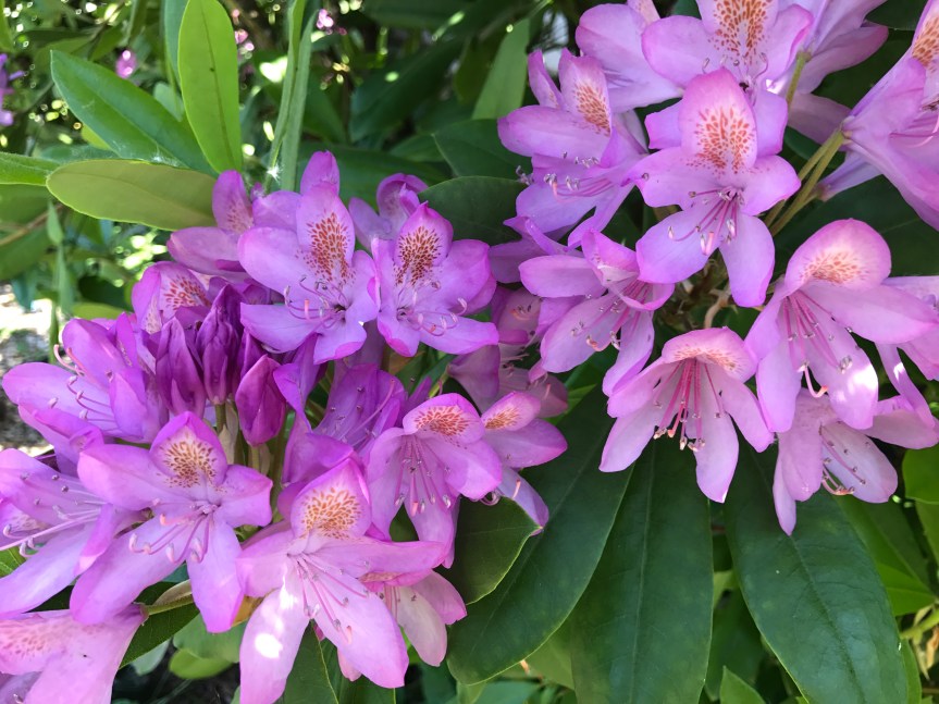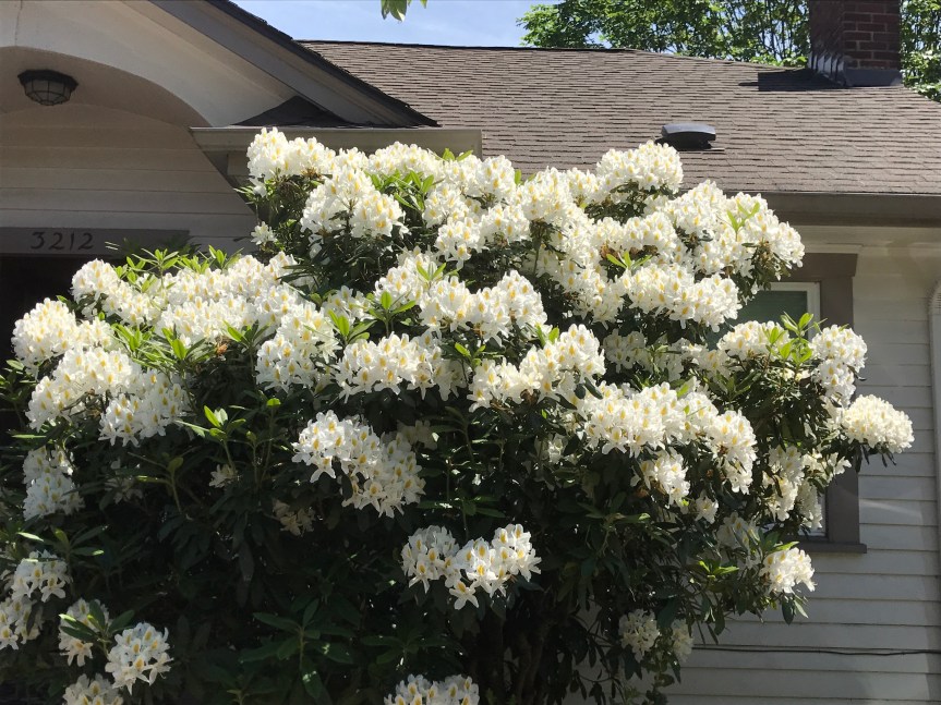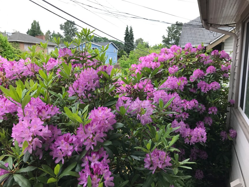 This is the week when the rhododendrons in my front yard are in full bloom.