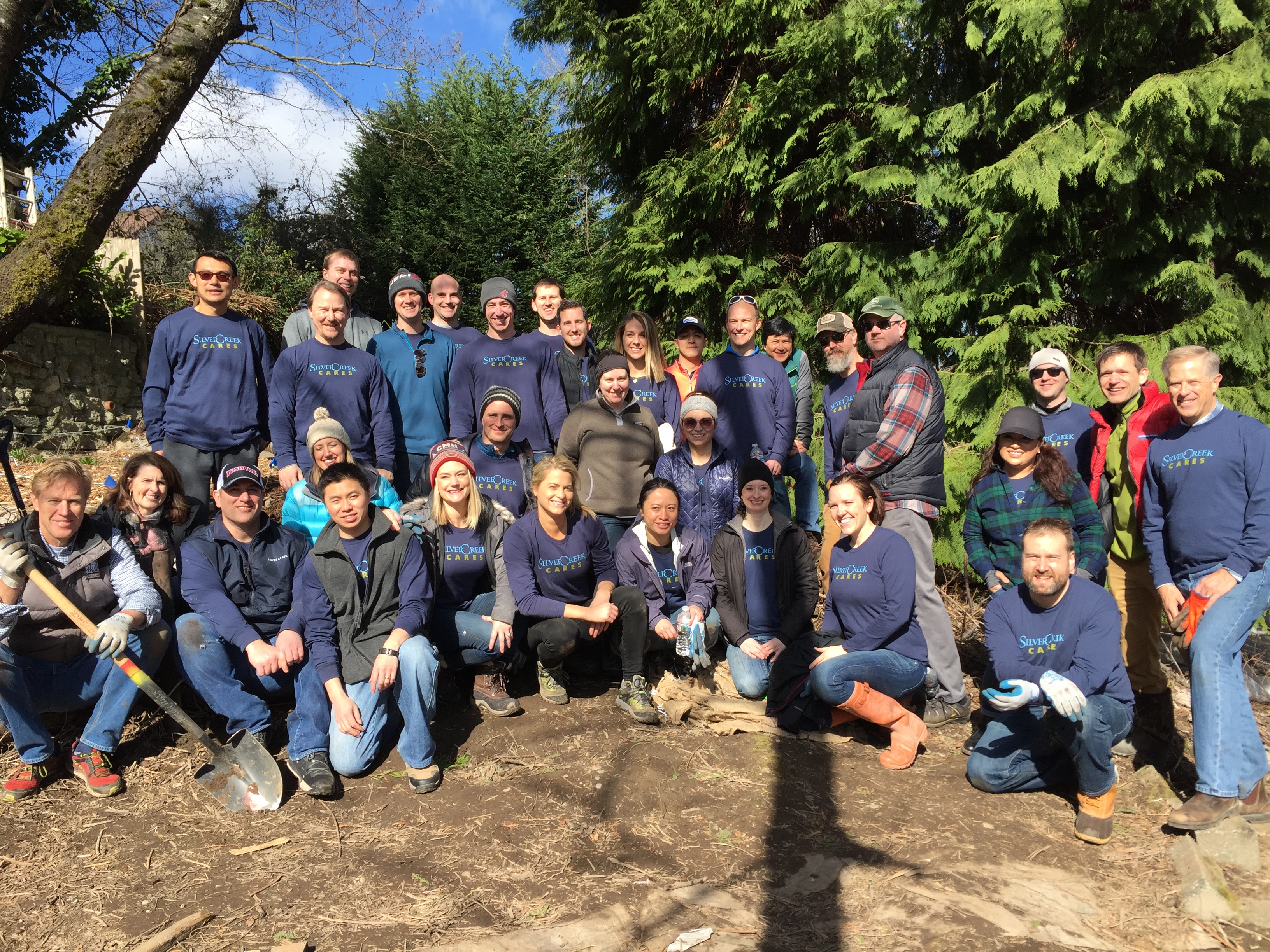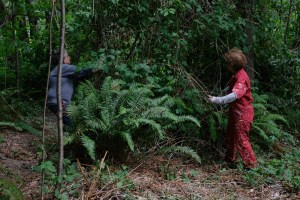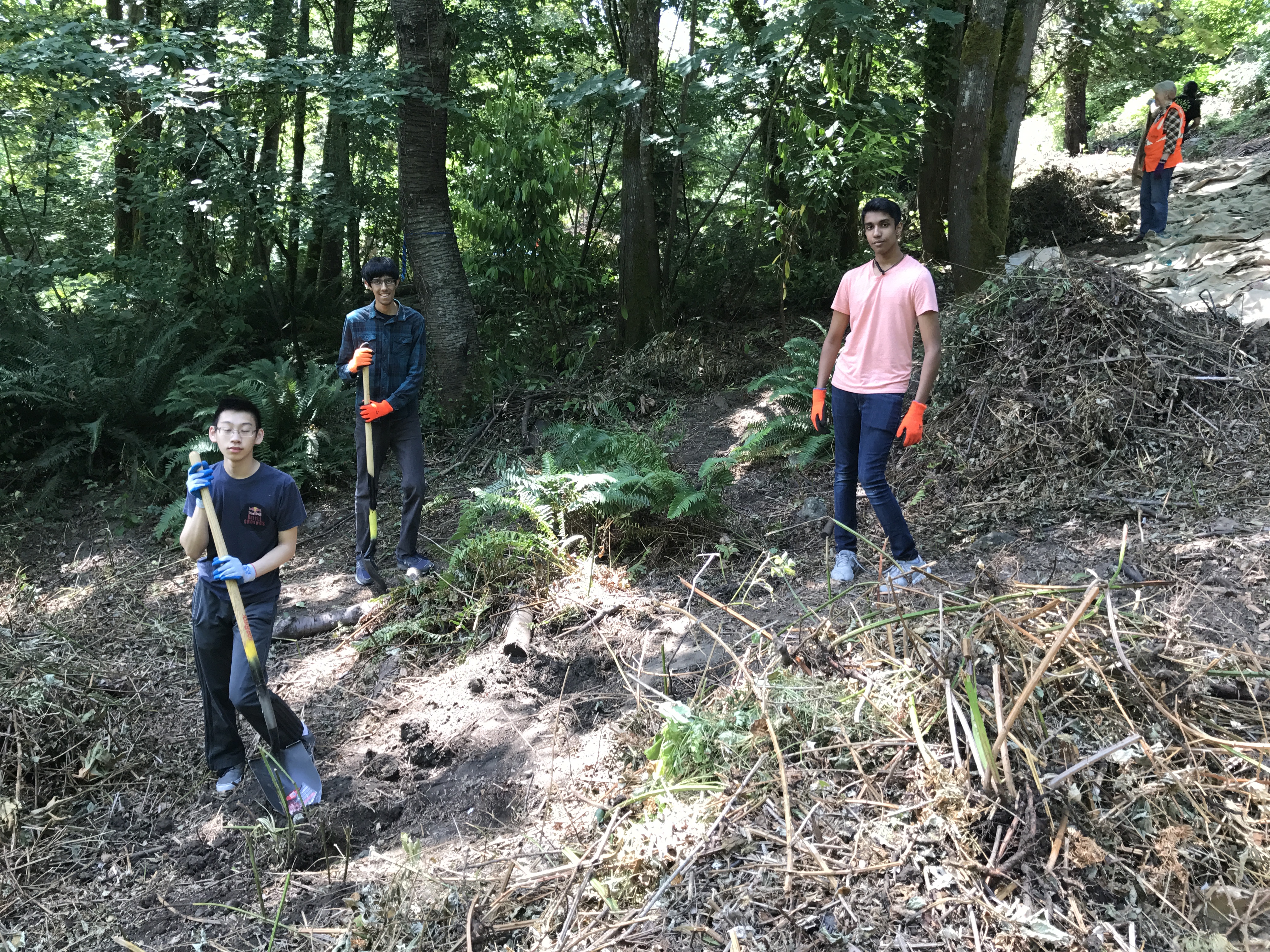 A second group started to clear an area that hadn’t been cleared before, one that bordered our southern planting area. Dense blackberry vines and other weeds were impinging on, or had actually begun to cover, some of our shrubs and ground covers. The third group removed weeds from the north side of the Hanford Stairs.