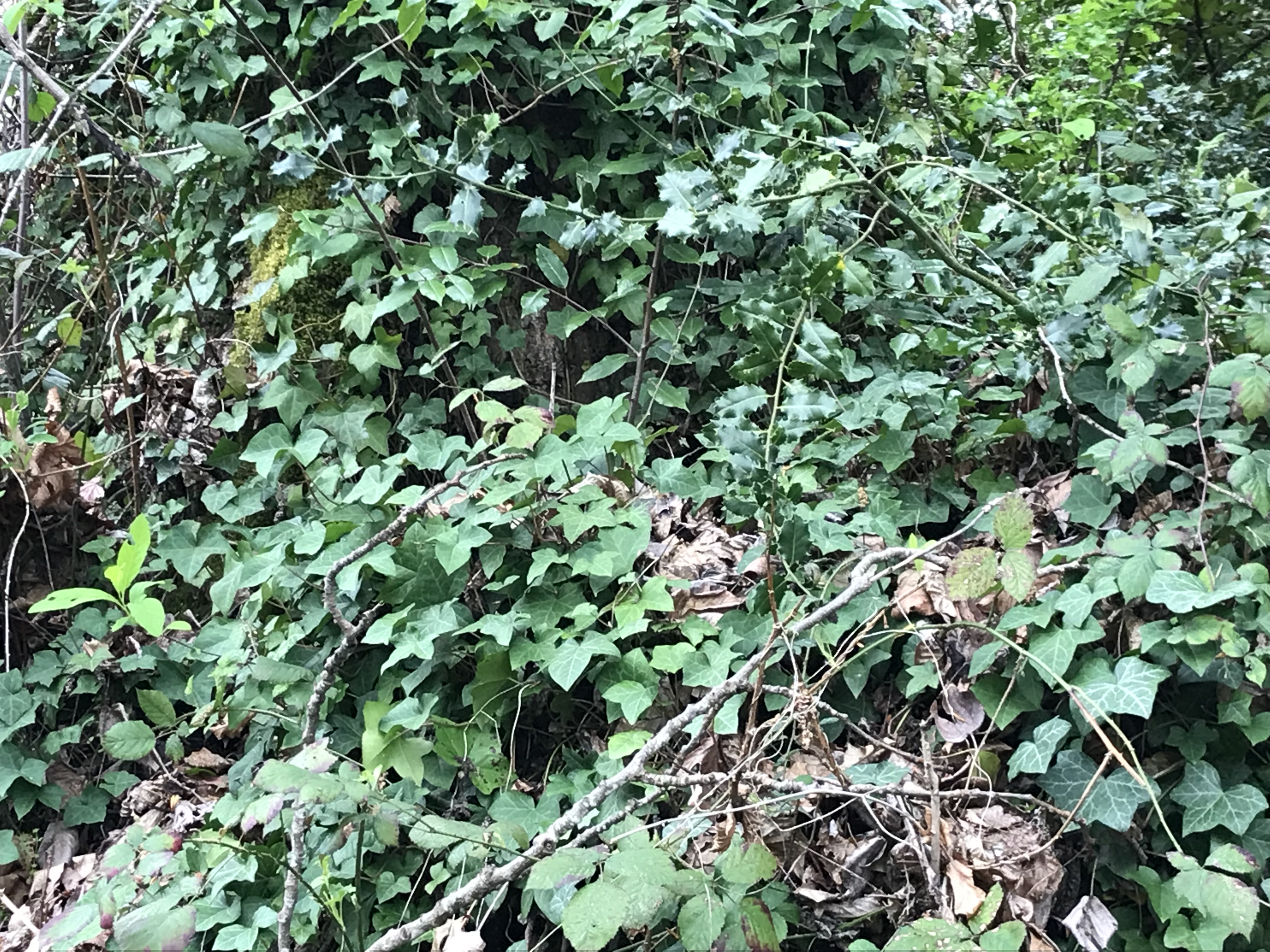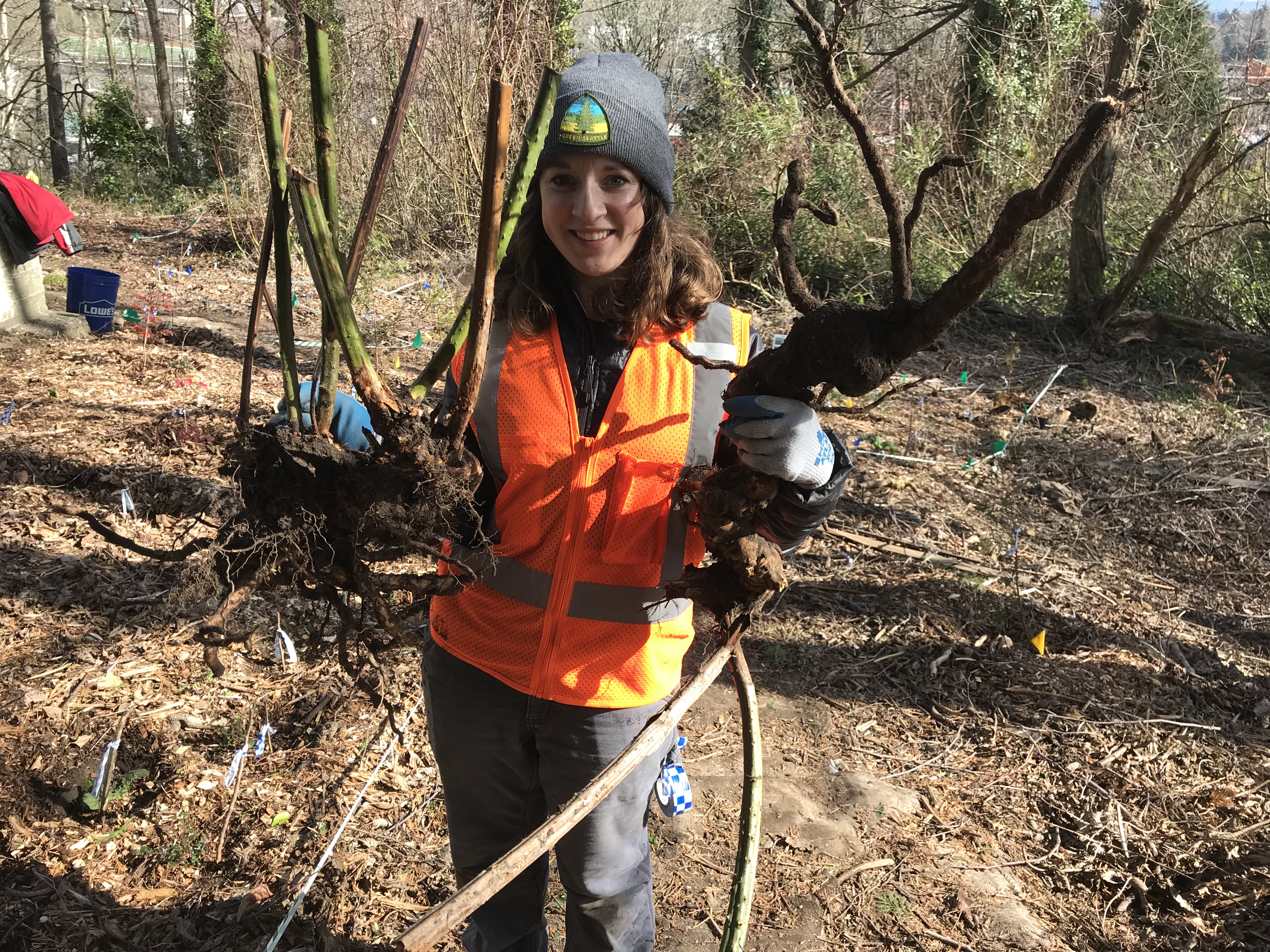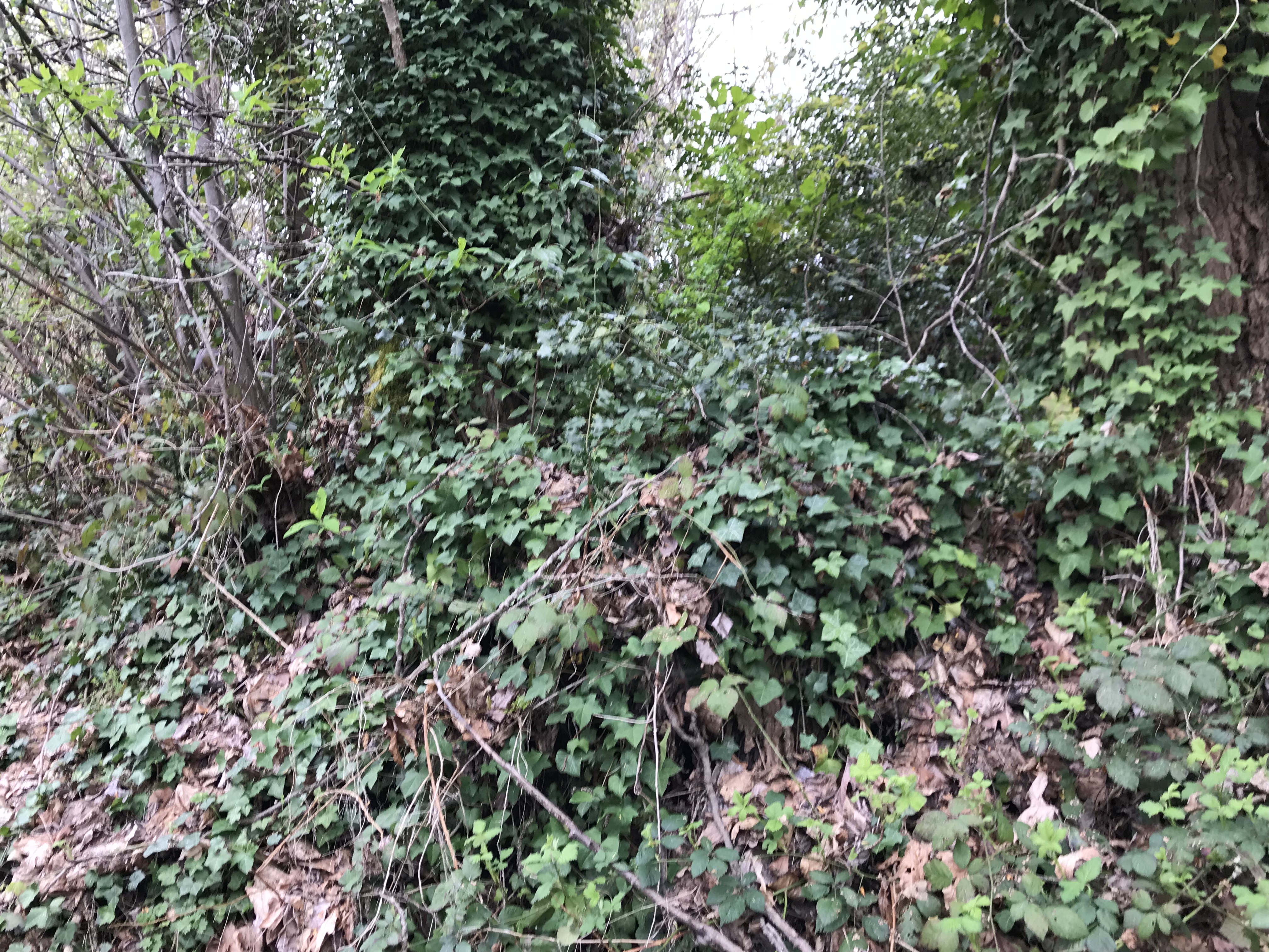 Neither Shirley nor I had taken any photos of the group that had cleared weeds in the planting area near the wood chip pile earlier in the work party but I did get one of what the area looked like after it was cleared. Imagine the area in the photo below with 100+ invasive vines emerging from the ground and you will get a sense of what it looked like at the beginning of the work party.