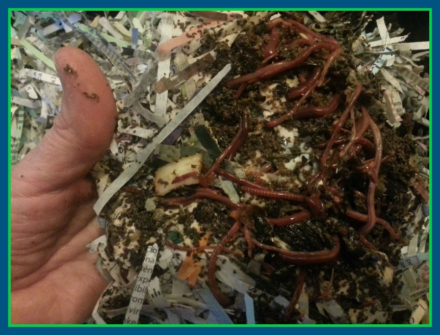 Vermi-composting is a process by which worms make high quality fertilizer for the garden. I have a large outdoor worm bin as well a smaller bin that stays in the house during the winter and on my deck the rest of the year. I blend most of the food scraps I put into both worm bins, but last week I decided to put some bigger pieces of food in the small bin so that I could watch the worms at work.